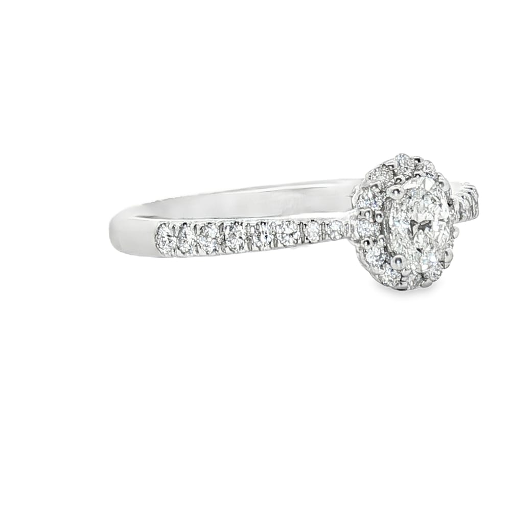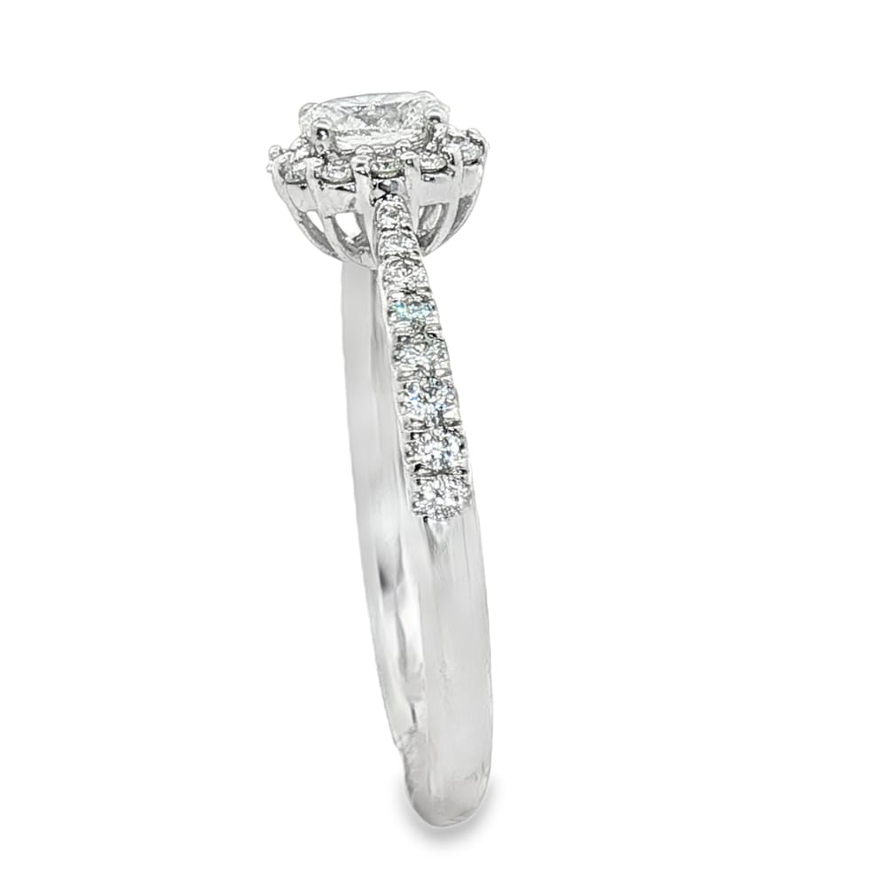 Celebrate your love with this stunning 14K White Gold Engagement Ring, featuring a brilliant .50ct natural diamond center stone, complemented by a dazzling 1/3ct diamond halo. The exquisite halo setting enhances the sparkle of the center diamond, creating an eye-catching display of light from every angle. Crafted with precision and elegance, this ring weighs 2.6g and is designed to stand the test of time, making it the perfect symbol of your commitment. Whether you’re planning to propose or commemorate a special moment, this radiant diamond ring offers the perfect blend of sophistication and romance.