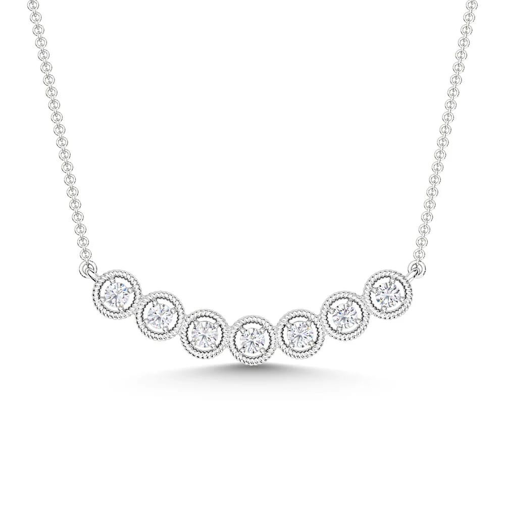 Elevate your style with this exquisite 10K White Gold pendant featuring lab-grown diamonds. Adorned with seven round-cut stones, this piece boasts a total weight of 0.16 carats, making it a dazzling addition to any jewelry collection. With its elegant design and shimmering allure, this pendant is perfect for both everyday wear and special occasions.