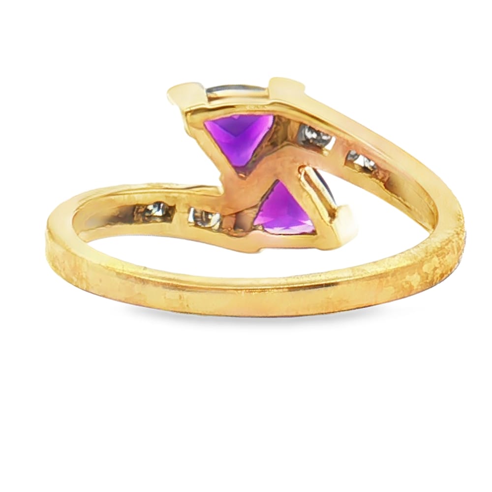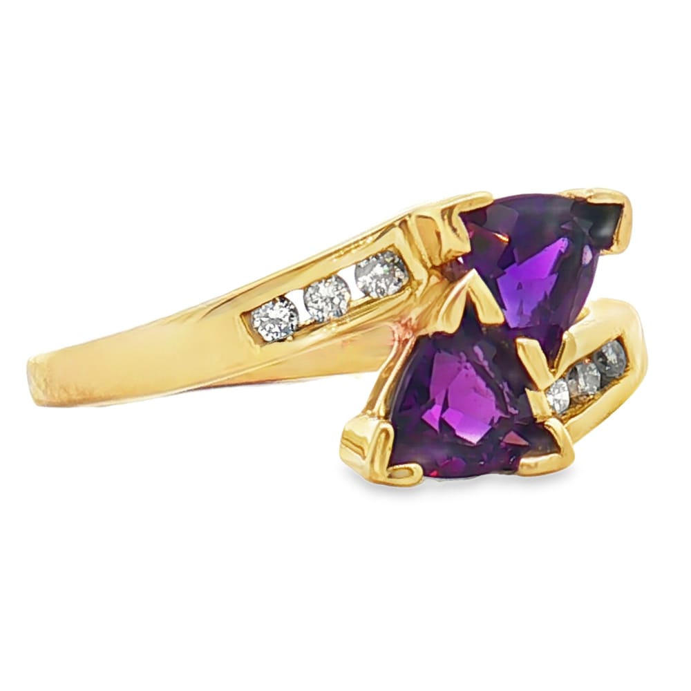 Elevate your accessory game with this exquisite 14K yellow gold ring featuring a vibrant 2 trillion amethyst and sparkling diamonds. Perfect for any occasion, this ring combines elegant design with luxurious materials for a truly memorable piece.