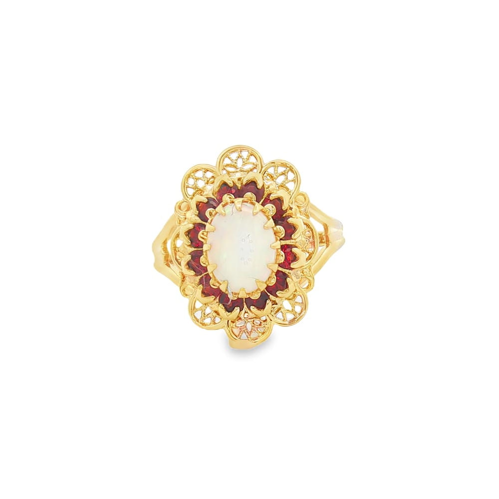 10K Yellow Gold Genuine Opal and Garnet Ring