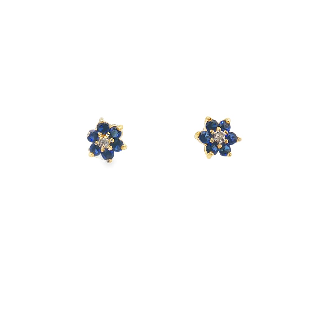 10K Yellow Gold Lab Created Sapphire Flower Shaped Stud Earrings with Diamond Accents