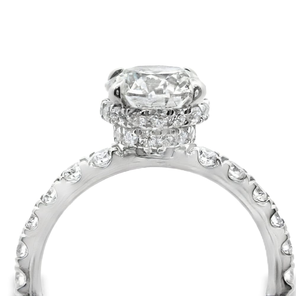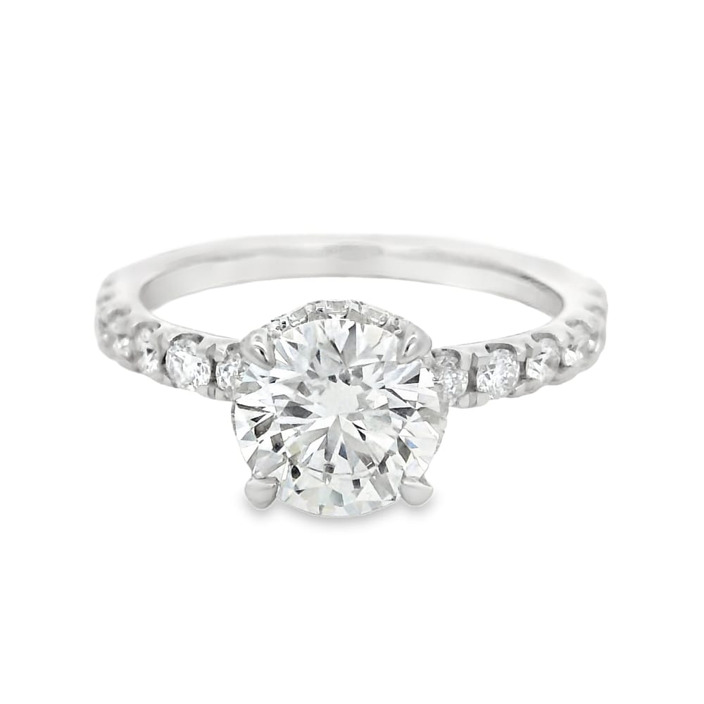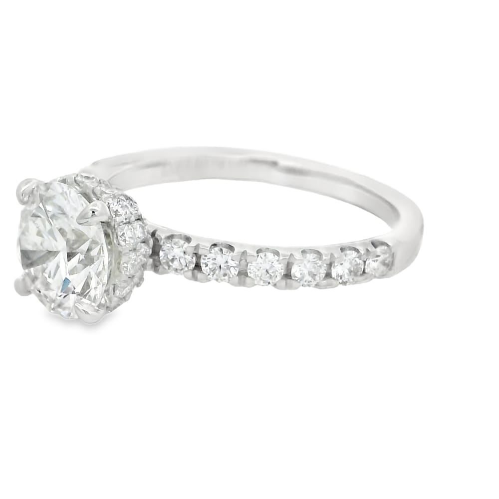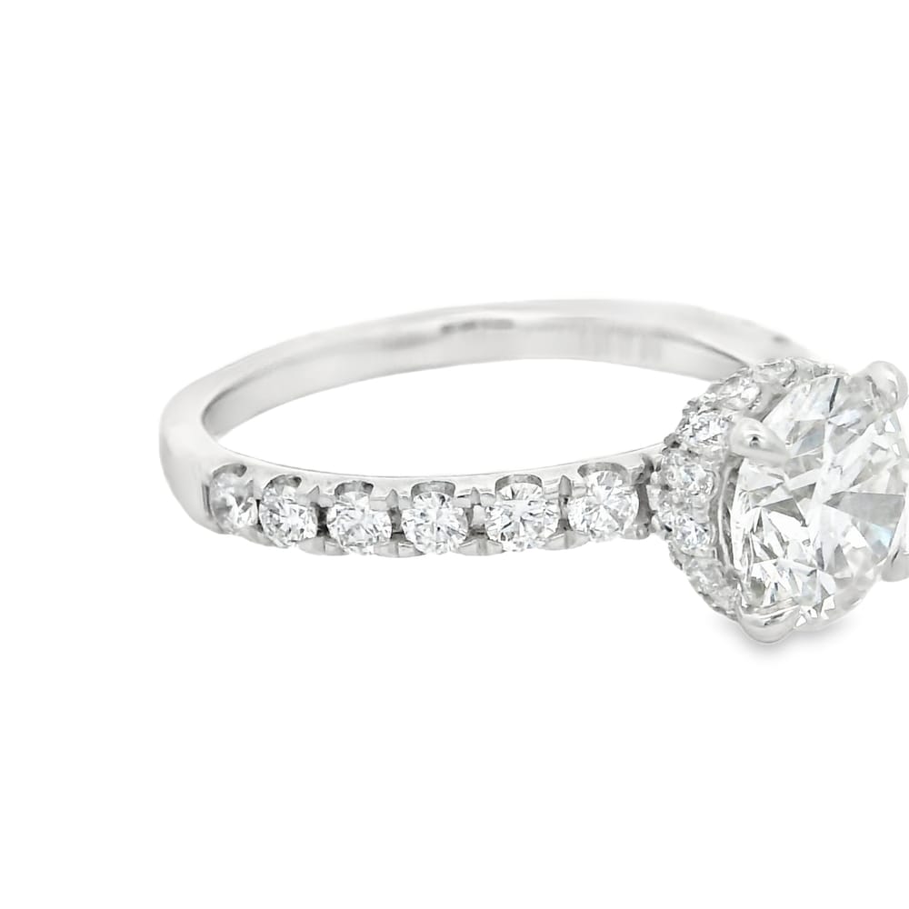 This elegant women’s engagement ring features a brilliant 1.52 carat lab-grown round diamond with a flawless F color and VS1 clarity. Crafted in 14K white gold, this exquisite piece combines timeless beauty with modern innovation, ideal for celebrating your love.
