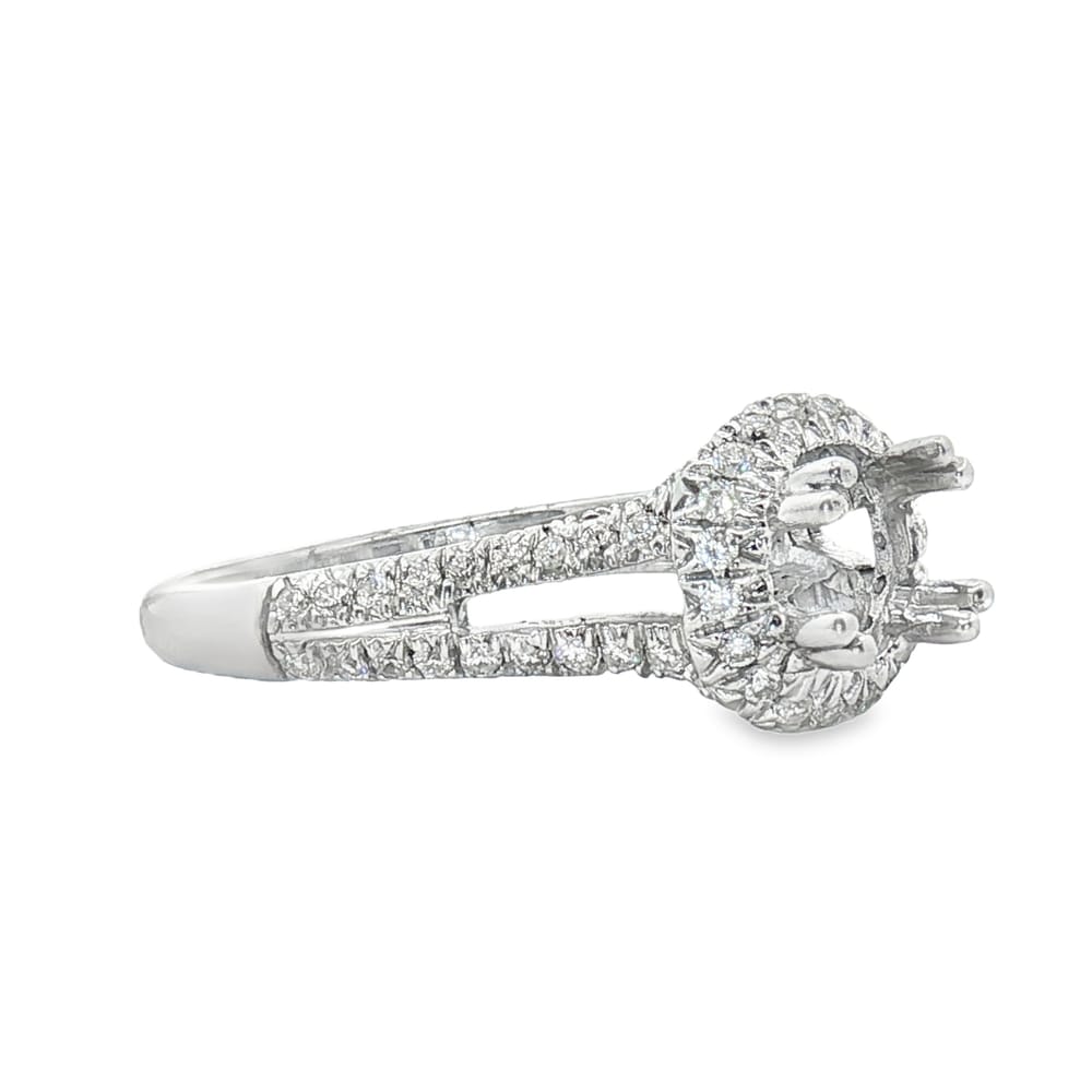 This exquisite engagement ring features a beautiful 14K gold setting that elegantly showcases the center stone of your choice. Adorned with round diamonds totaling 0.50 carats, this semi-mount design allows for a personalized touch while providing a radiant sparkle. With a gross weight of 4.34 grams, this piece combines quality craftsmanship with a timeless aesthetic for the perfect expression of love.