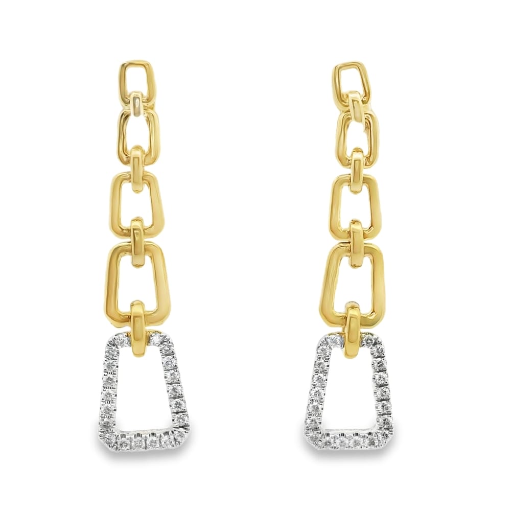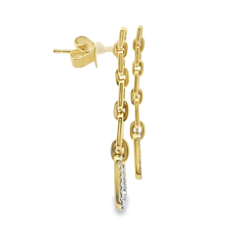 These exquisite 14K yellow gold earrings feature a remarkable design adorned with 40 round diamonds, totaling 30 points in weight. Perfect for elevating any outfit, they are a stunning addition to any jewelry collection.