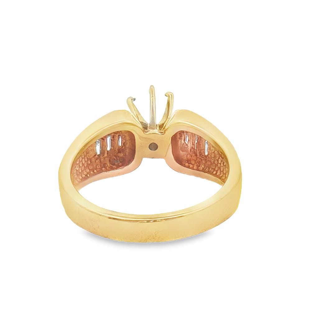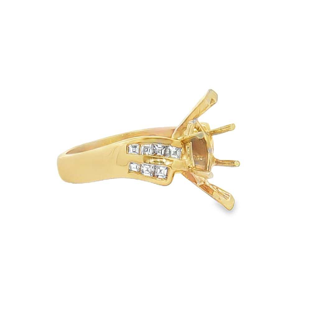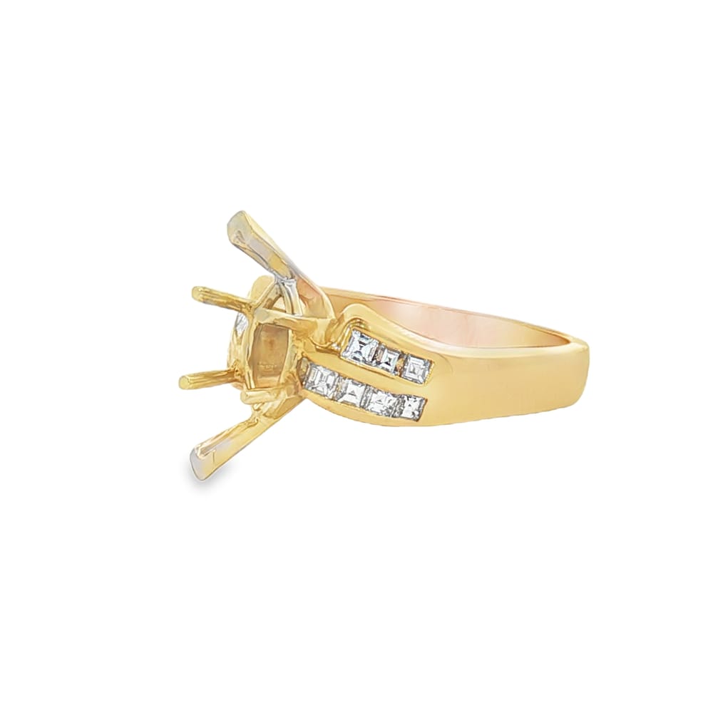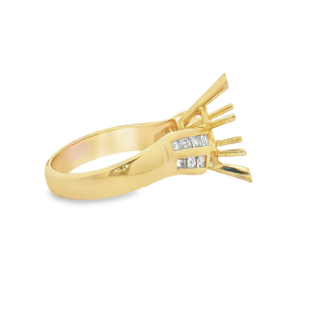 Elevate your proposal with this exquisite 14K gold engagement ring featuring a beautiful yellow finish. Designed for the modern woman, it showcases one center stone with 14 stunning princess-cut side diamonds, totaling 0.46 carats. This semi-mount setting allows you to customize your perfect engagement ring, combining elegance and personal style in one breathtaking piece.