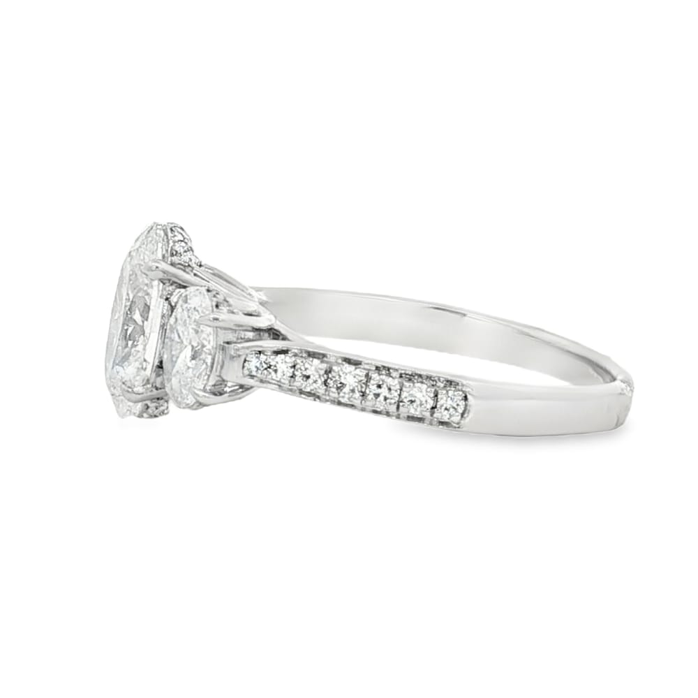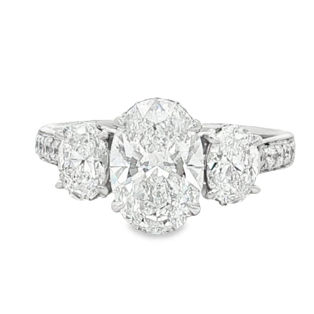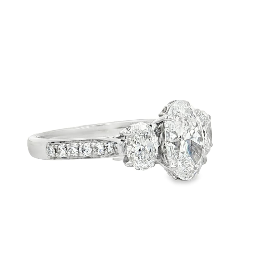 This exquisite 14K gold ring features a stunning 1.61ct oval lab-grown diamond at its center, complemented by two perfectly matched oval side diamonds weighing a total of 0.67ct, creating an elegant and timeless piece for women who appreciate classic beauty.