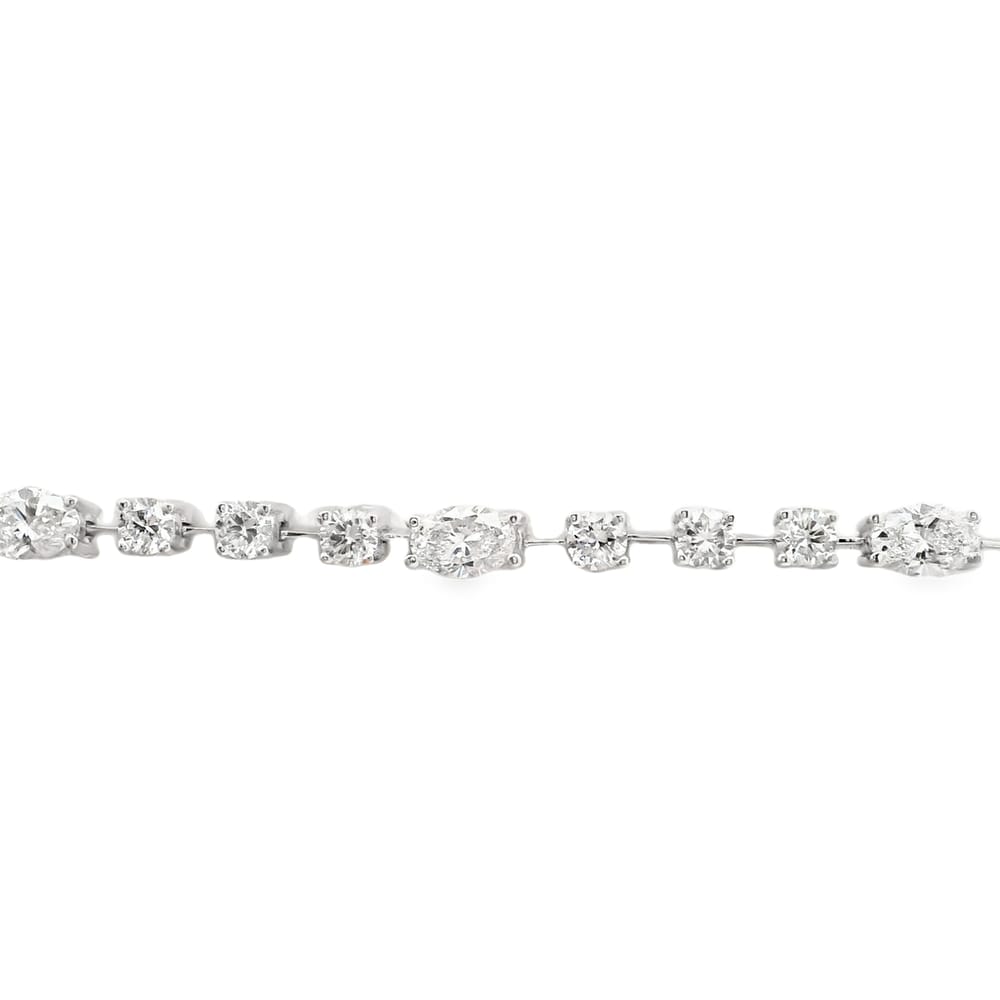 This exquisite 14K white gold bracelet features a captivating arrangement of 8 oval and 30 round brilliant diamonds, totaling 3.30 carats. A perfect blend of elegance and sophistication, this piece is designed for women who appreciate luxury and style. Elevate your jewelry collection with this timeless fashion accessory that shines with every movement.