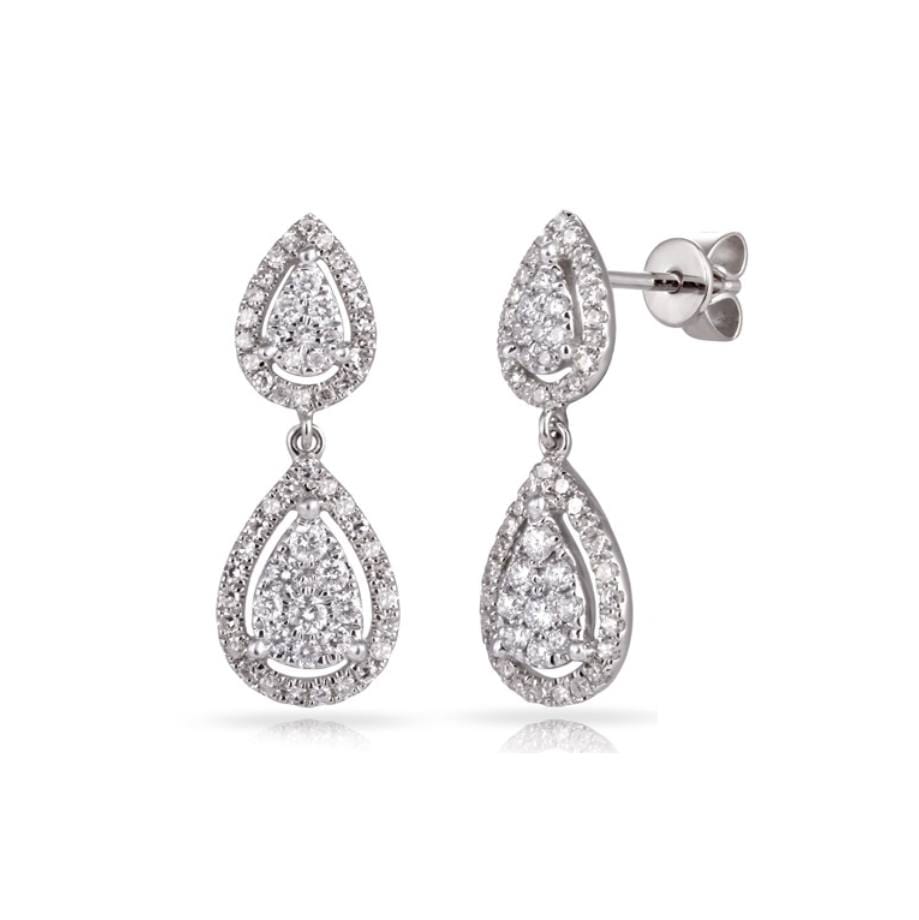 Elevate your elegance with these exquisite pear-shaped drop earrings crafted in 14K white gold. Featuring a total of .62 carats of radiant diamonds, these earrings effortlessly blend sophistication and style, perfect for any occasion.