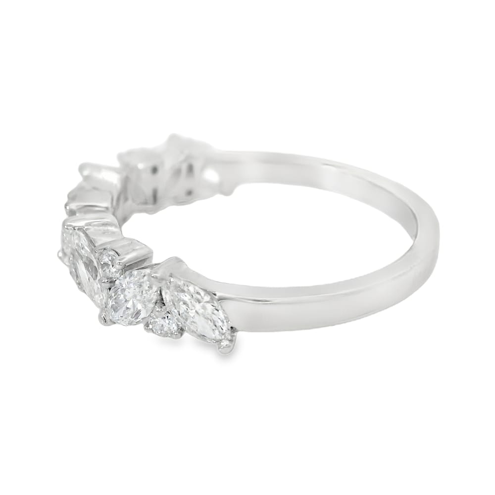 This elegant 14K white gold ring features 15 sparkling diamonds that enhance its timeless design. With a total weight of 1.00ct and a brilliant E-F color grade, this classic piece is a perfect choice for any occasion.