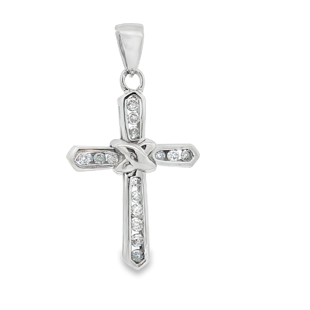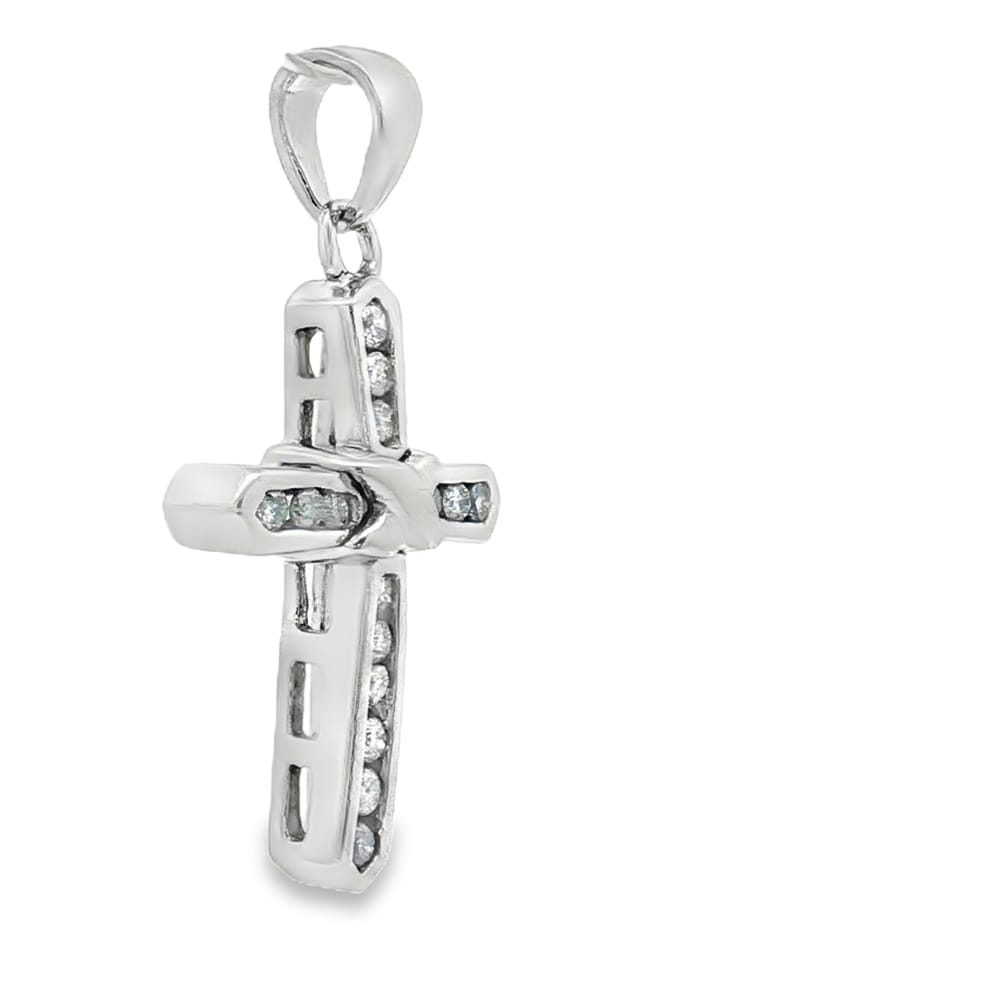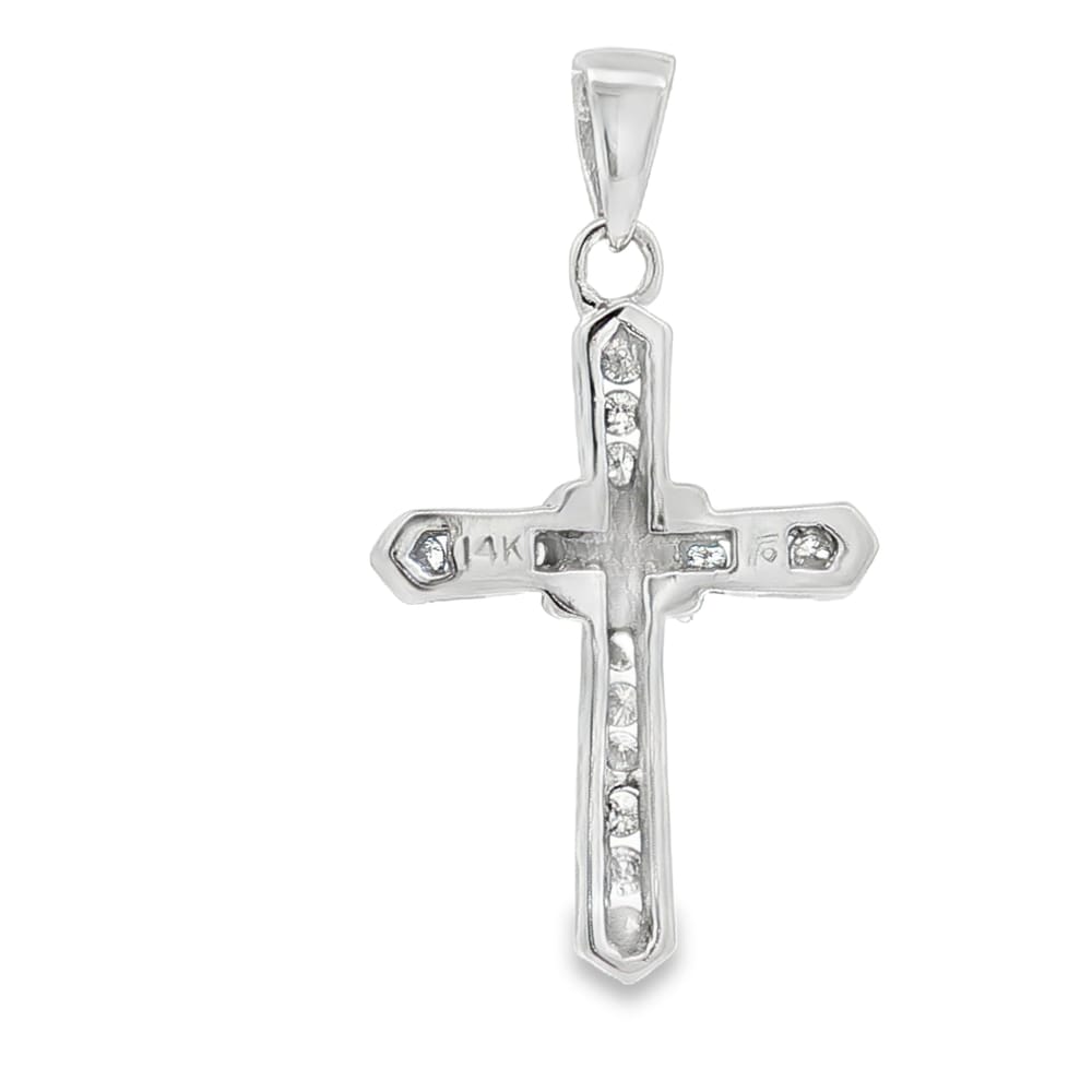 This exquisite cross pendant is crafted from premium 14K white gold cross, exuding elegance and grace. Adorned with 15 brilliant round diamonds, it sparkles beautifully, making it the perfect accessory for any occasion. Its lightweight design of only 3.20 grams ensures comfortable wear throughout the day. Gift this magnificent piece to a loved one or add it to your own jewelry collection for a touch of divine charm.