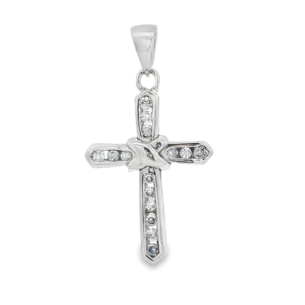 14K White Gold Cross Pendant – 3/4 Inch