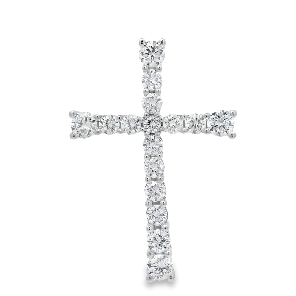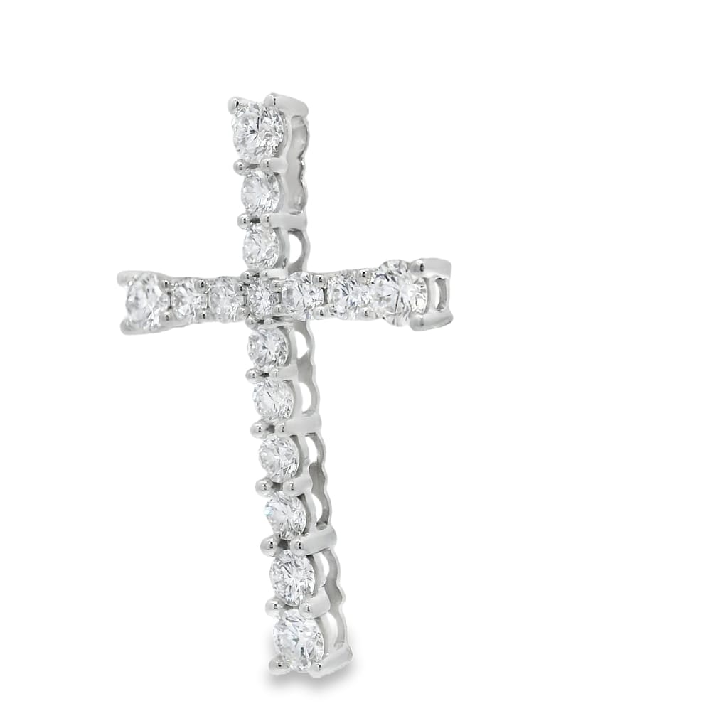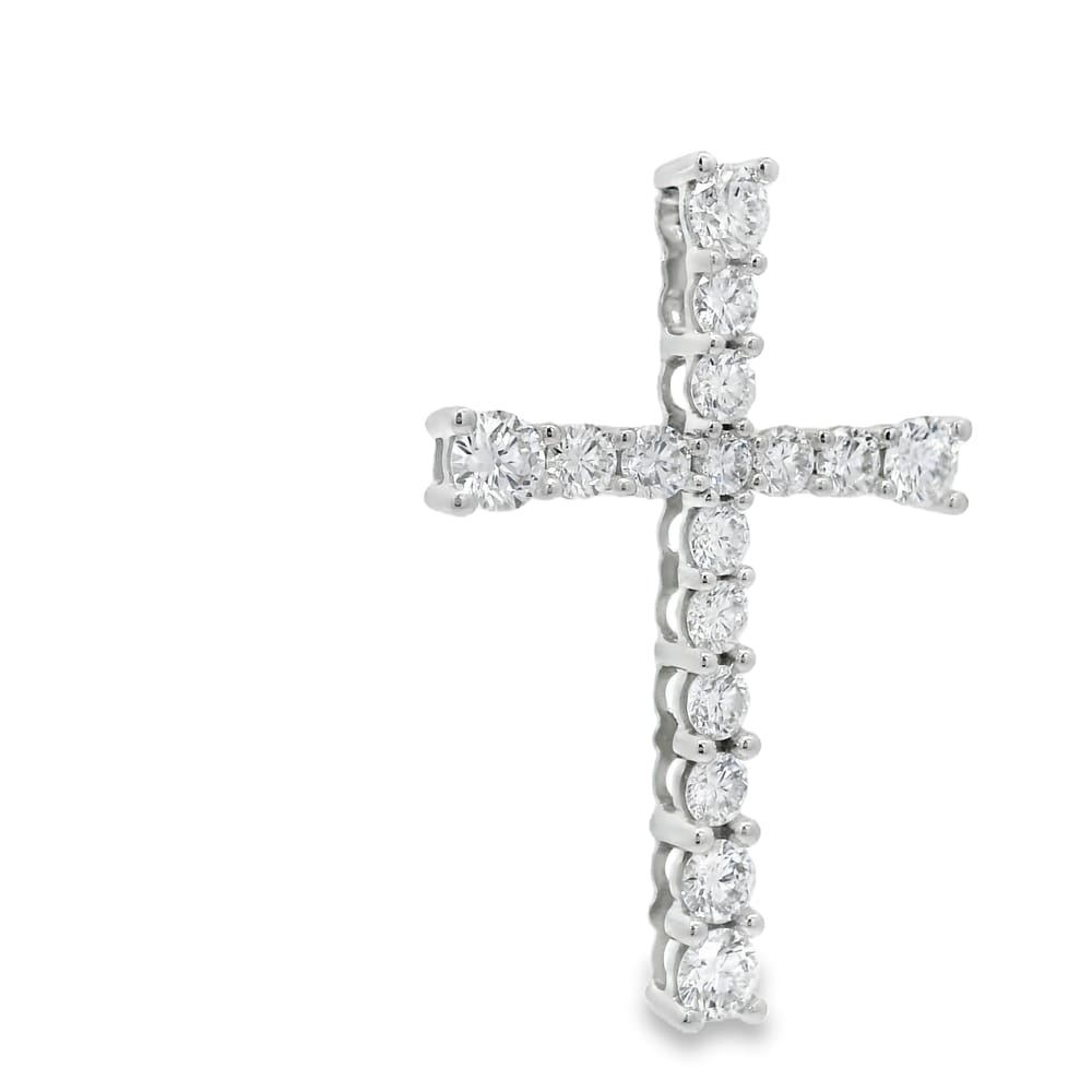 14K White Gold Lab Grown Diamond Cross Pendant with 16 Round Stones