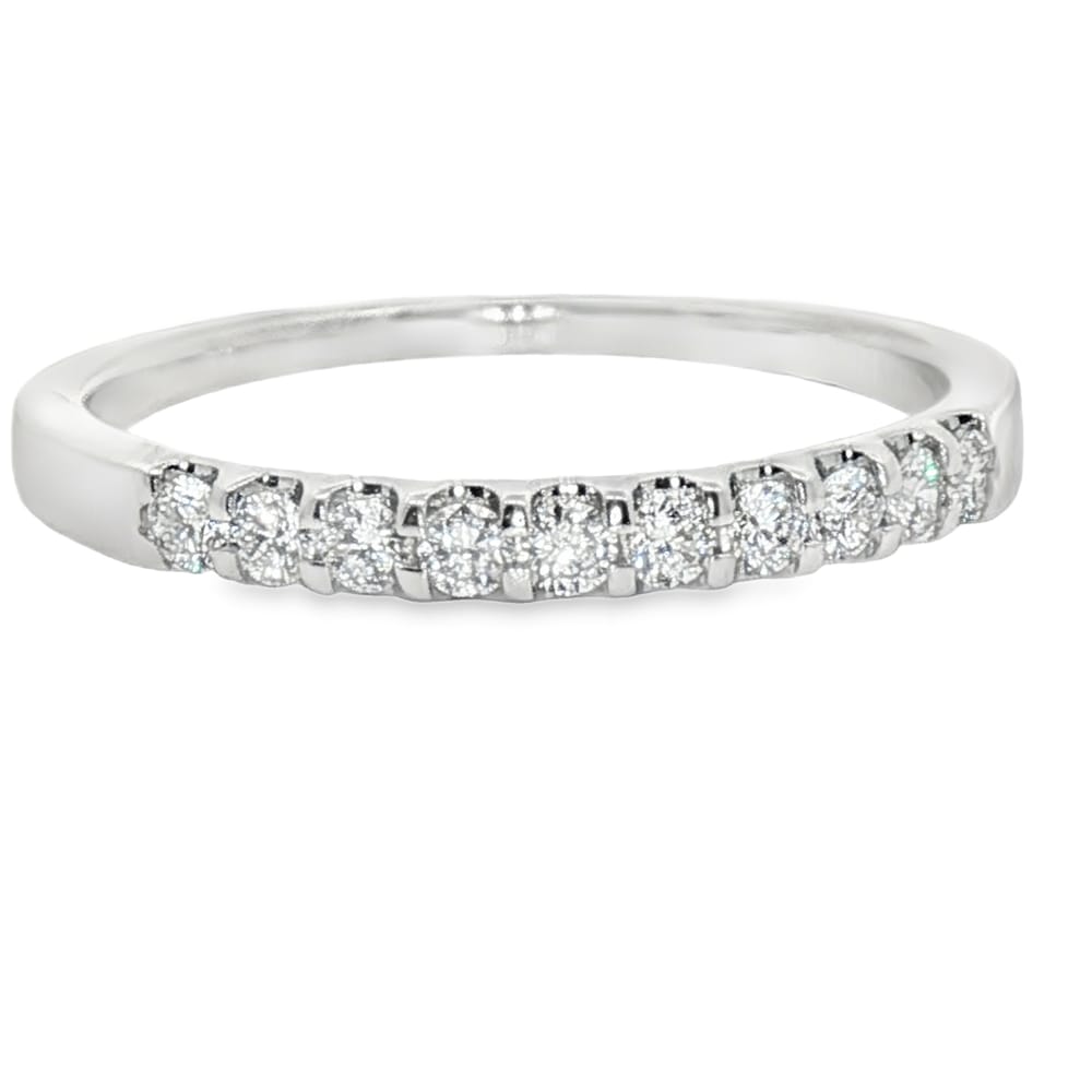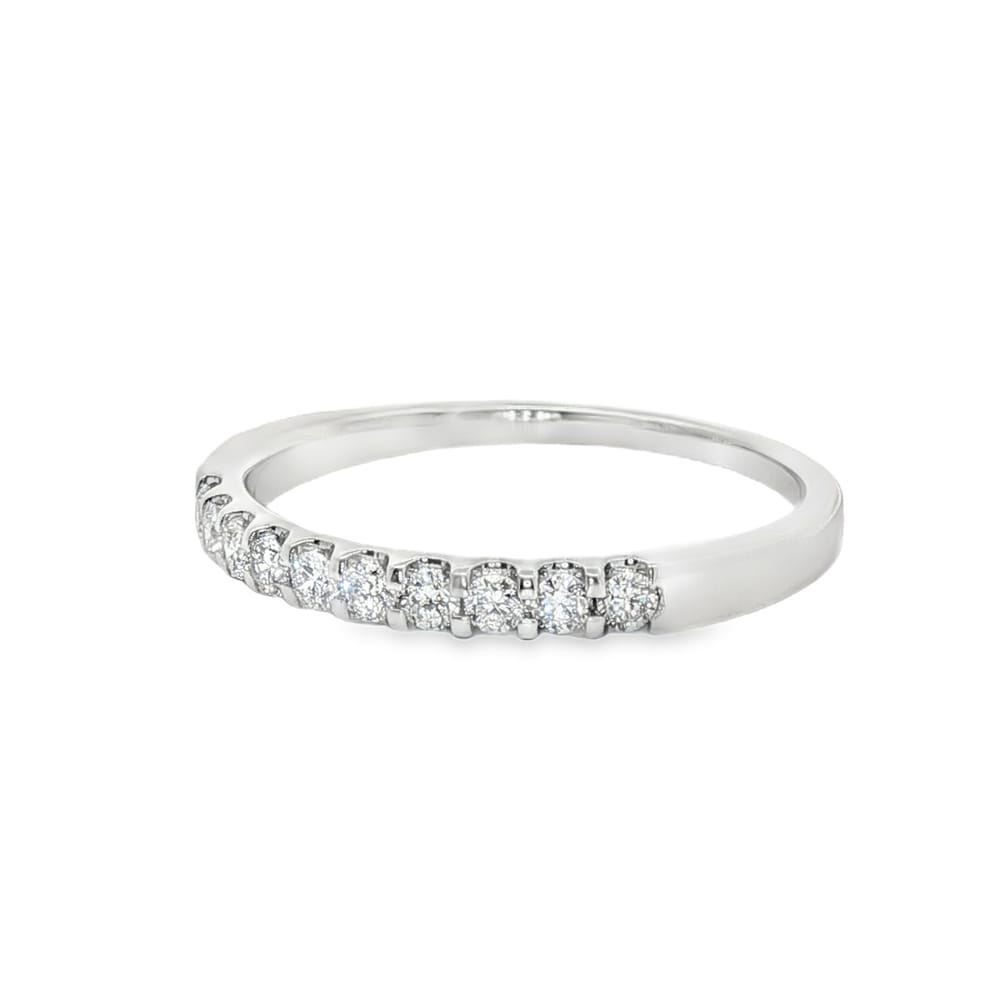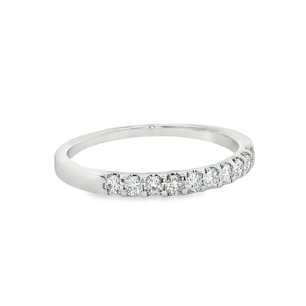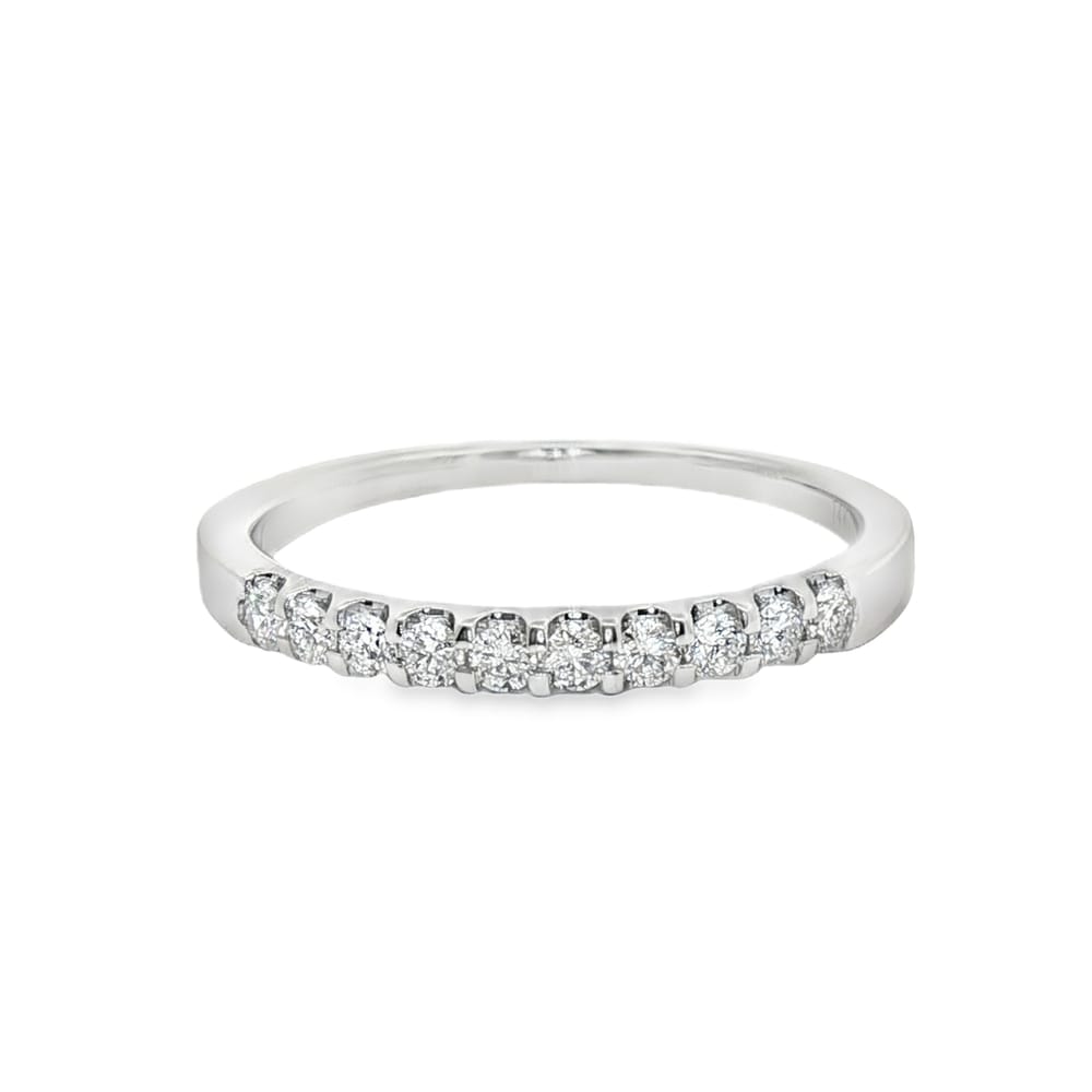 Celebrate your love with this exquisite 14K Gold wedding band featuring 10 dazzling round diamonds totaling 0.25 carats. Crafted in luxurious white gold, the prong setting beautifully showcases each stone, adding a touch of elegance to any occasion. This timeless piece is perfect for the modern bride who desires both beauty and sophistication in her ensemble.