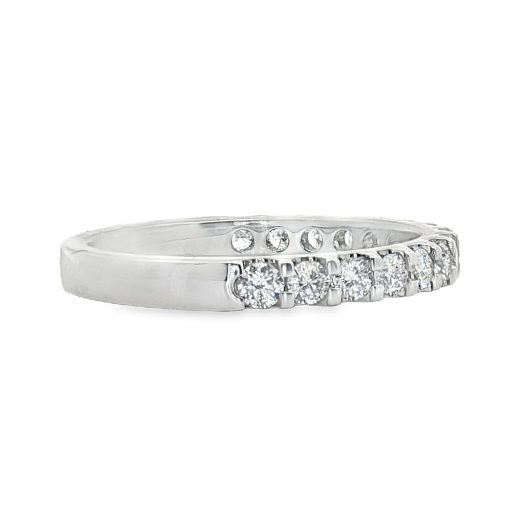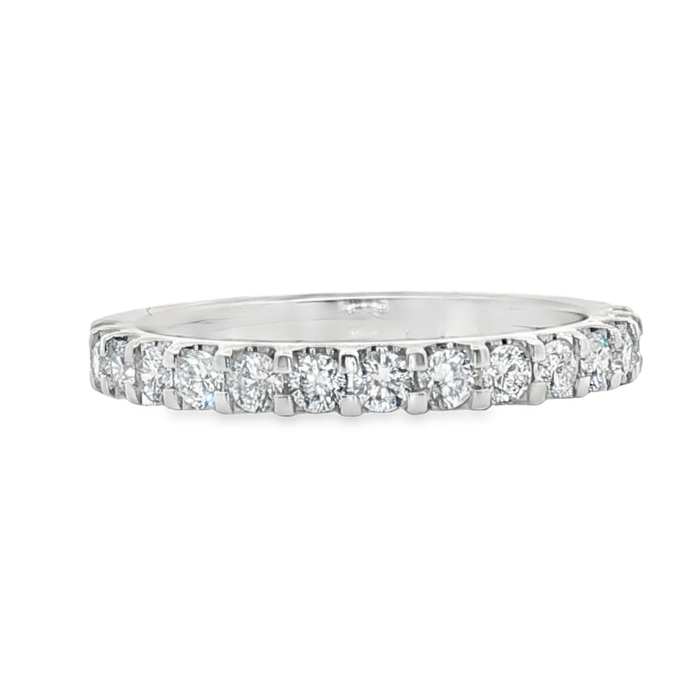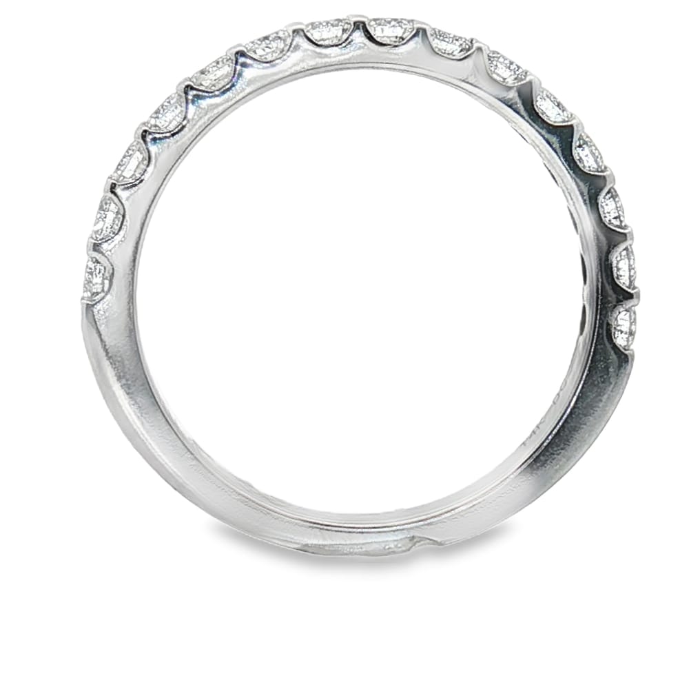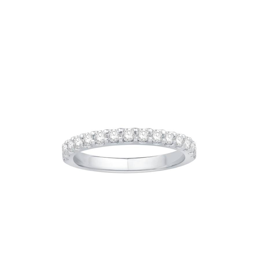 Celebrate your love with this exquisite 14K white gold wedding band, elegantly adorned with .55 carats of brilliant diamonds. Crafted for women, this band symbolizes lasting commitment and is perfect for eternal vows. The timeless design enhances any engagement ring, making it a spectacular choice for your special day.