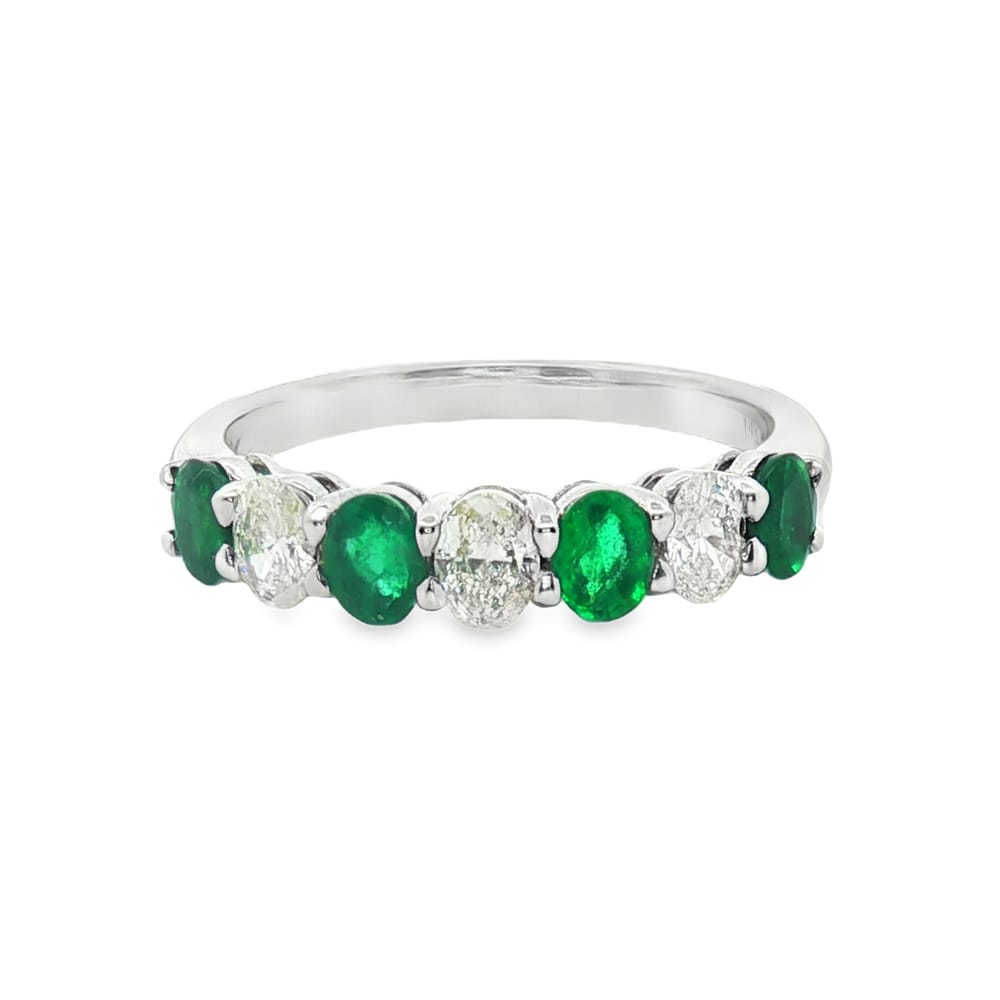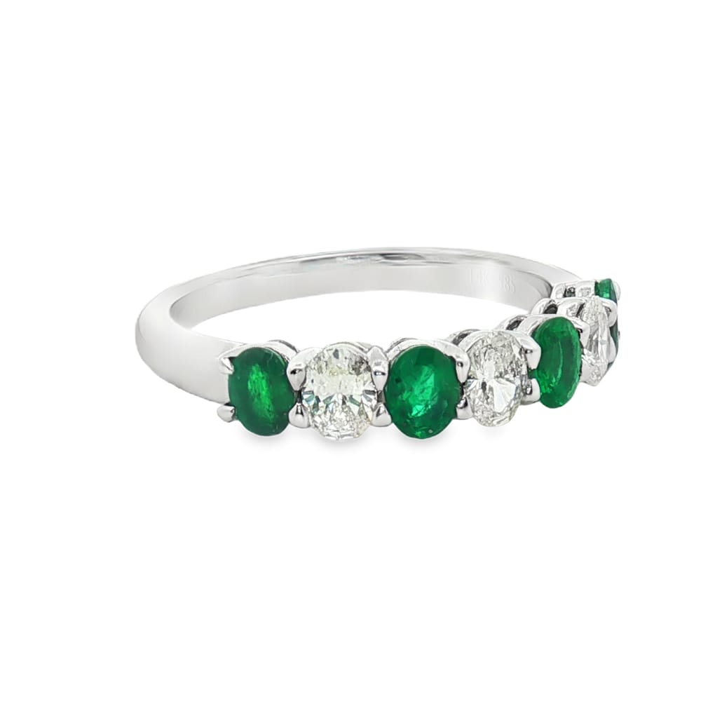 Illuminate your elegance with this exquisite 14K white gold ring featuring a stunning oval-shaped emerald, gracefully accented by brilliant diamonds. With a total weight of 3.11 grams, this piece combines sophistication and durability, making it a perfect addition to your jewelry collection. Celebrate timeless beauty and make a statement with this luxurious ring, designed for the modern woman.