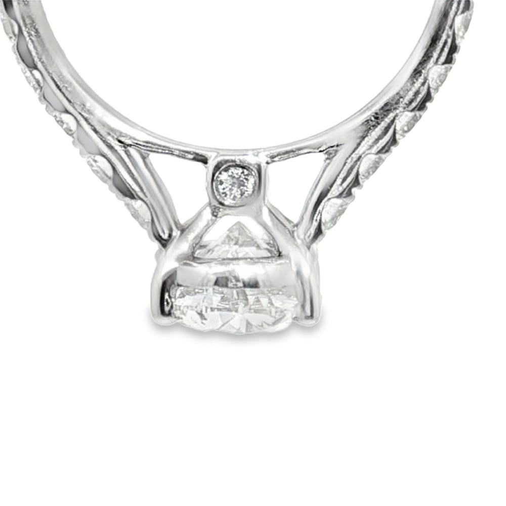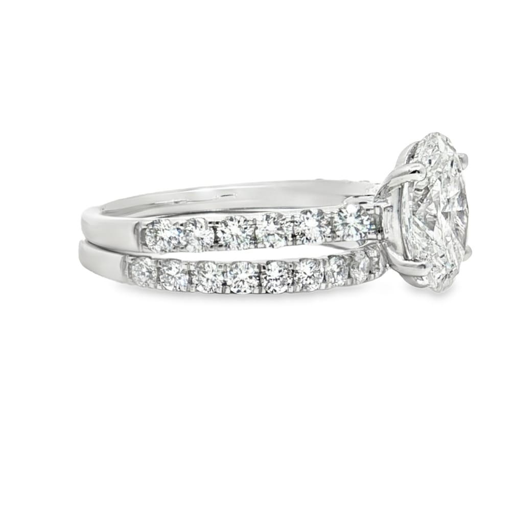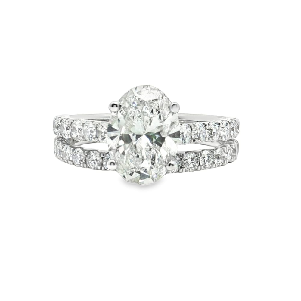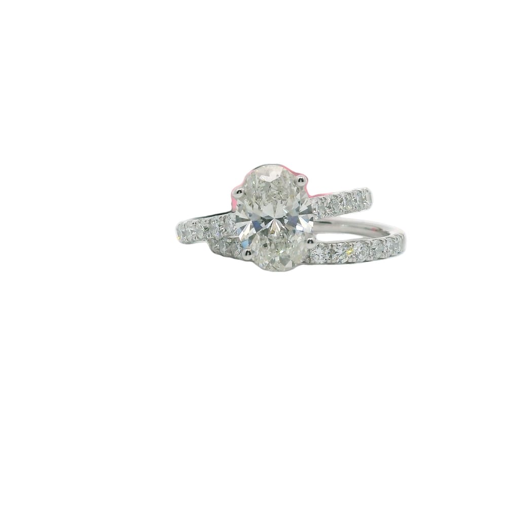 This exquisite engagement ring features a beautiful lab-grown oval diamond weighing 1.98 carats, graded G for color and VS-1 for clarity. Crafted in 14K white gold, it boasts a total diamond weight of 3 carats with 29 additional diamonds, making it a captivating choice for any woman.