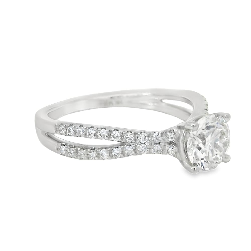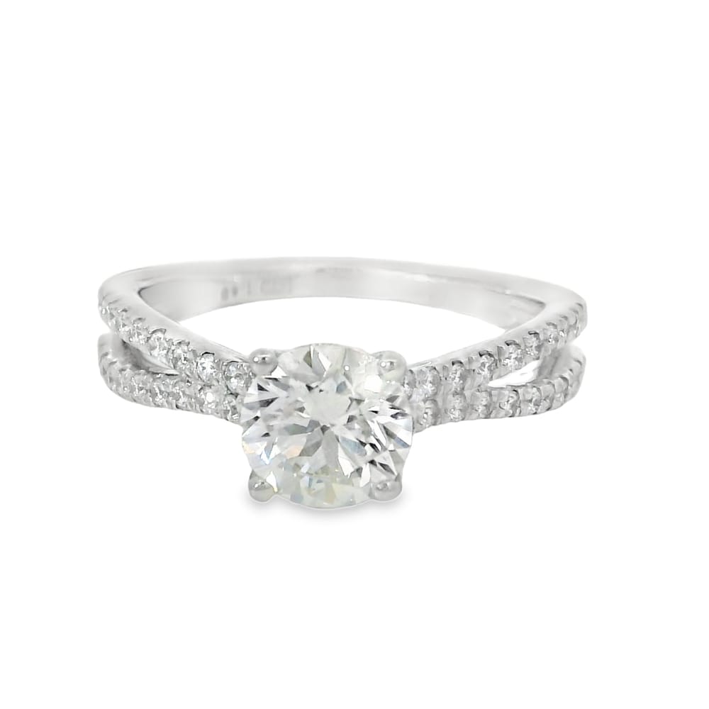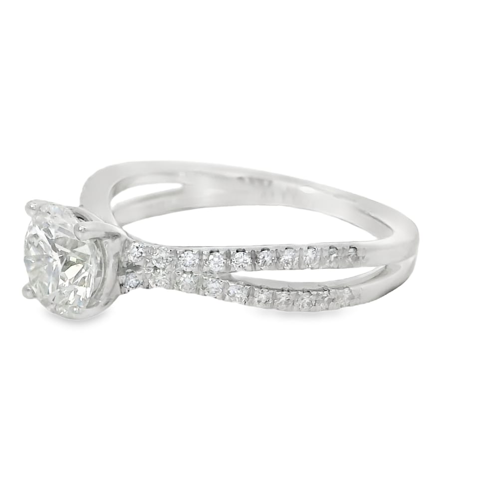 This exquisite 14k white gold engagement ring features a stunning 1.01ct lab-grown round diamond graded G-H VS, beautifully complemented by 0.40ct side round diamonds. With a total weight of 5.37 grams and IGI certification #67J304362312, it is the perfect symbol of your everlasting love.