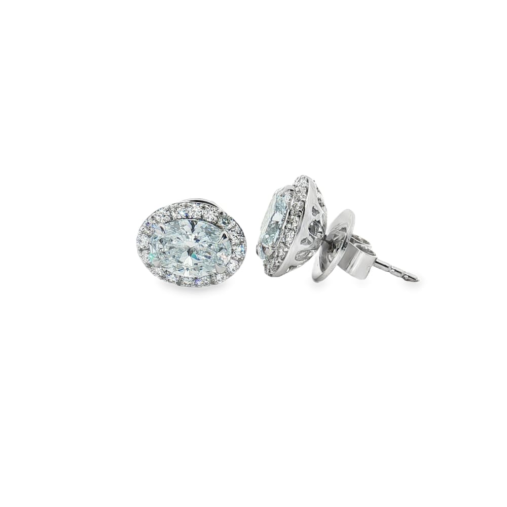 Elevate your jewelry collection with these exquisite 14K white gold earrings featuring a captivating combination of oval and round-shaped diamonds. With a total weight of 2.39 carats, these earrings shimmer with brilliance and elegance, making them perfect for any occasion. Crafted specifically for women, they are a true reflection of sophistication and style that will catch the light beautifully.