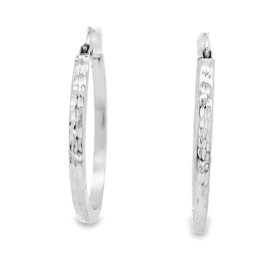 Elevate your elegance with these exquisite 14K white gold oval hoops adorned with sparkling diamonds. Perfectly crafted for the modern woman, they effortlessly blend sophistication with style.
