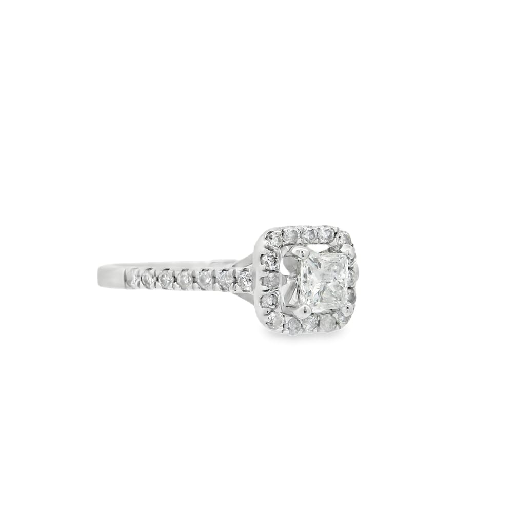 This exquisite ring features a breathtaking 0.30ct princess cut diamond, beautifully set in 14k white gold. With an additional 0.40ct of sparkling diamonds accentuating the design, it radiates elegance. Perfect for celebrating love, this ring offers a timeless appeal that will make any occasion memorable.