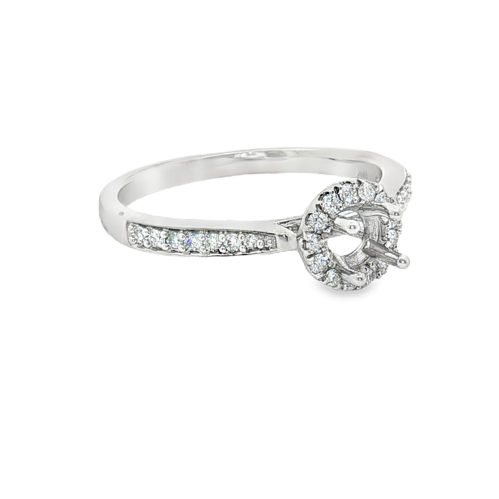 This exquisite engagement ring features a shimmering round center stone setting, crafted from luxurious 14K gold. Adorned with 14 brilliant round side diamonds totaling 0.20 carats, it brings an enchanting sparkle to a timeless design. With a total gross weight of 2.76 grams, this piece is perfect for celebrating a love that lasts a lifetime.