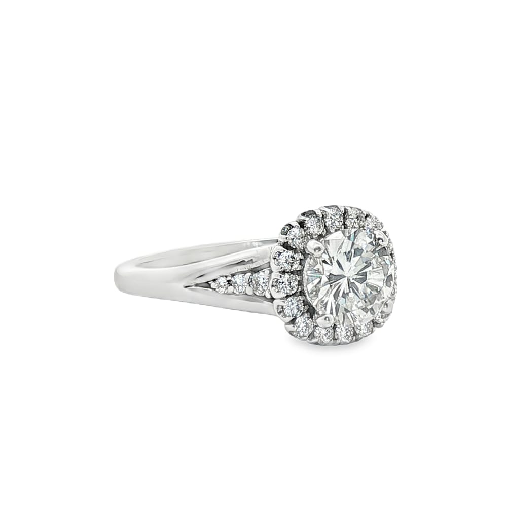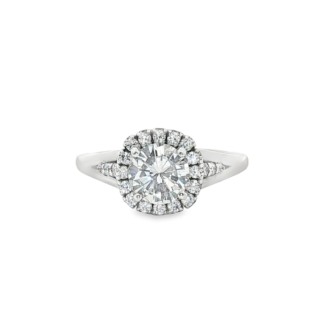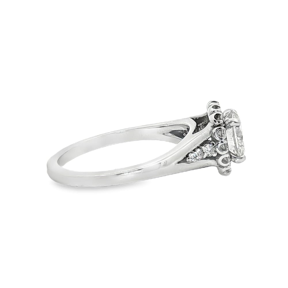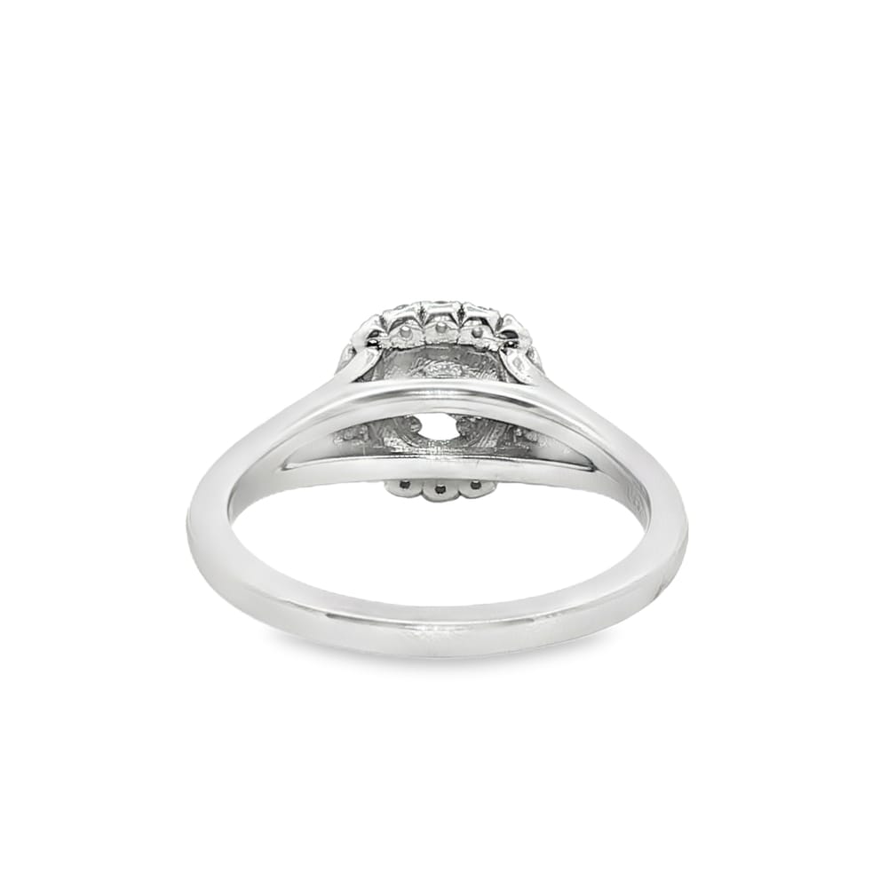 This exquisite engagement ring semi-mount is crafted from 14K white gold, featuring a beautiful round shape to highlight your chosen center stone. Weighing 4.14 grams, it provides a solid foundation for a stunning engagement ring that is perfect for any woman. With a total weight of 0.25 ctw of round diamonds, this ring promises to add an elegant sparkle to your special moment.