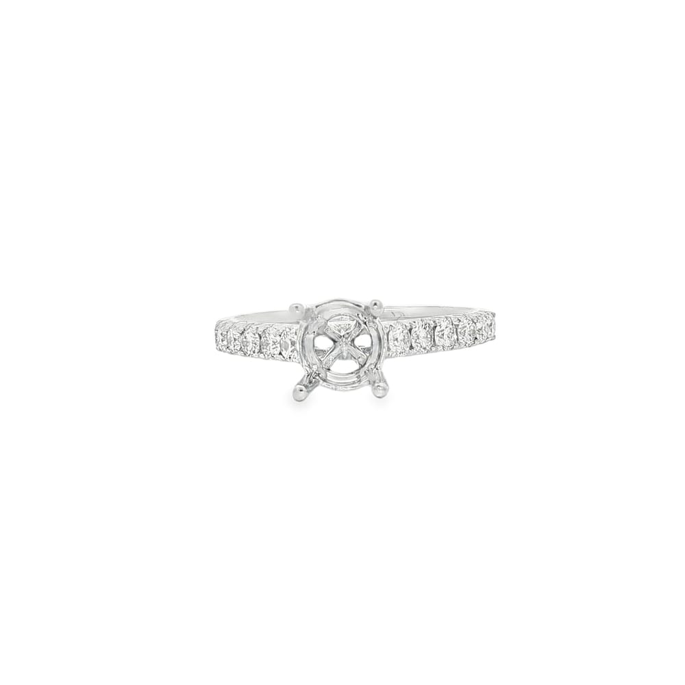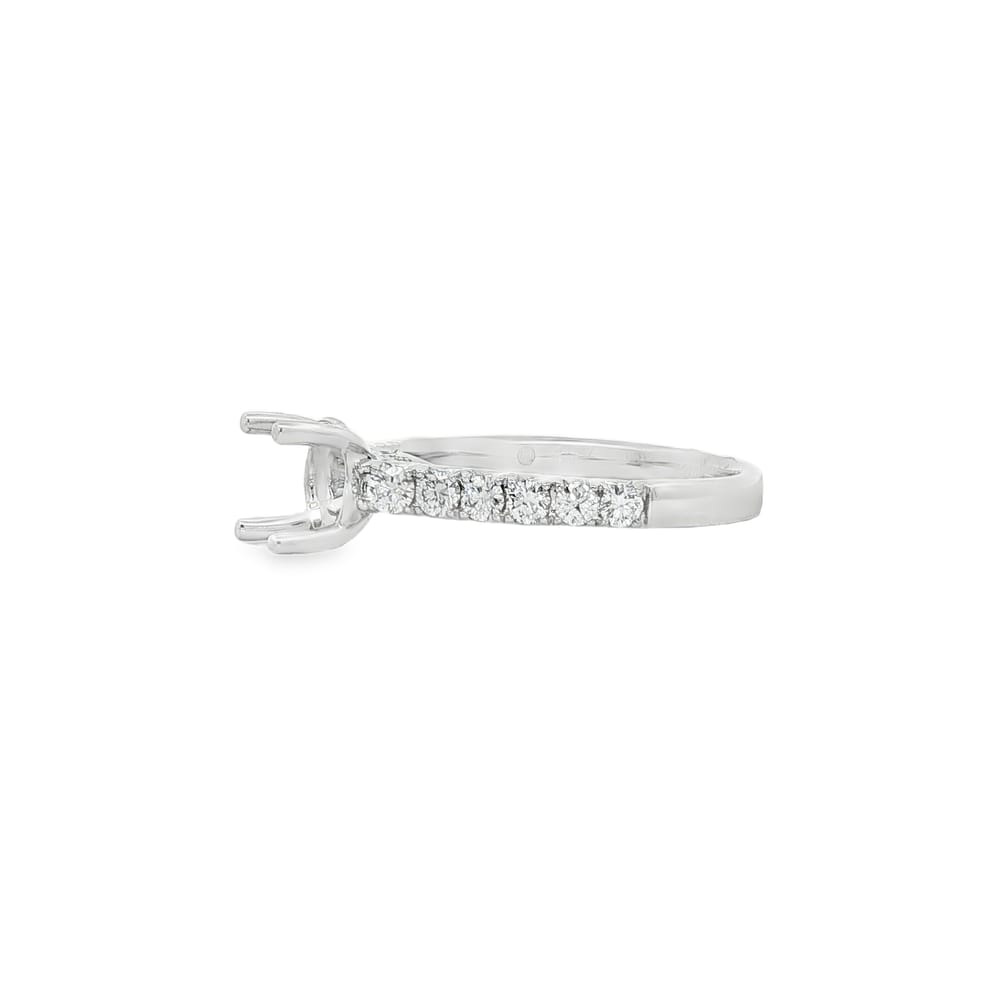 This exquisite semi-mount engagement ring is crafted from premium 14K white gold, offering a sleek and sophisticated backdrop for your chosen center stone. Adorned with 26 dazzling round diamonds, it adds a brilliant sparkle to celebrate your love. Designed for the discerning woman, this ring combines elegance and modernity, making it a perfect choice for a memorable proposal.