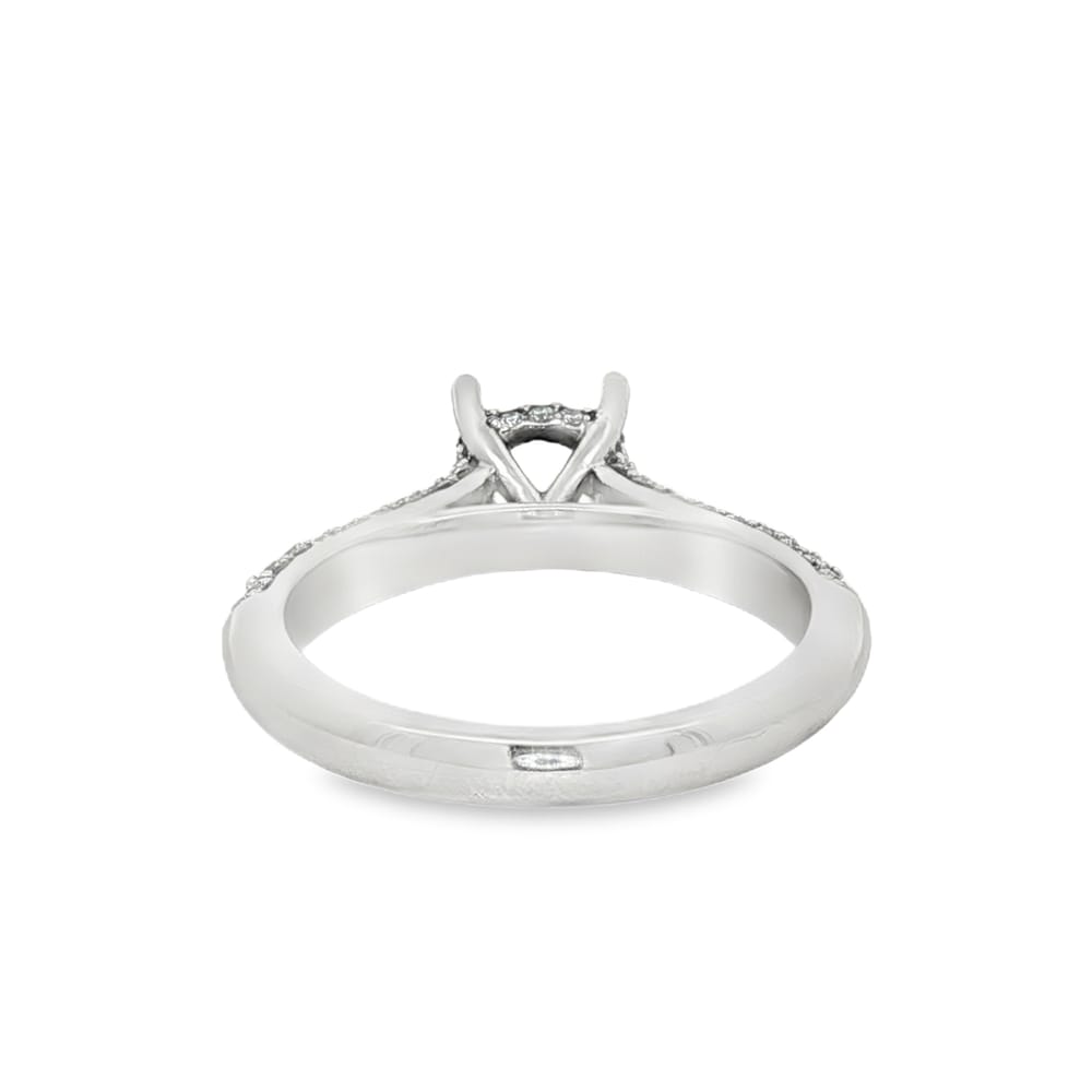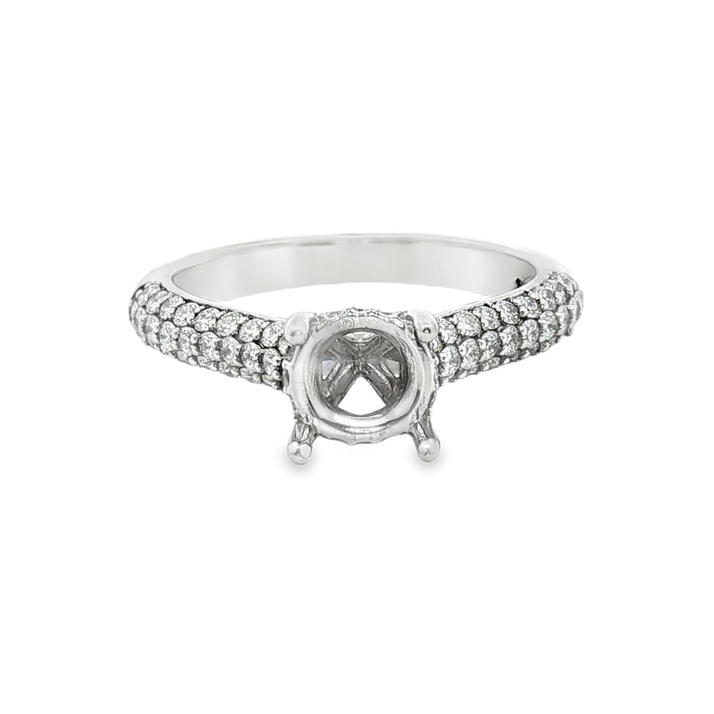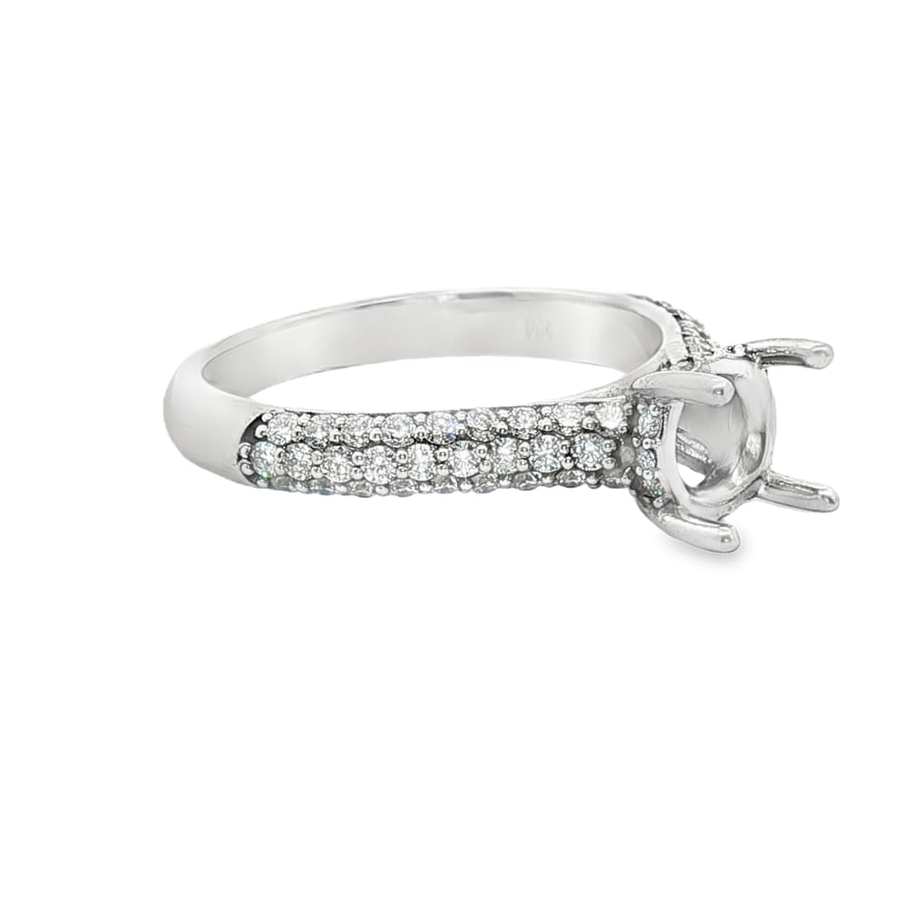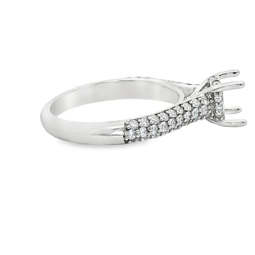 This exquisite engagement ring features a gorgeous 14K gold design combined with the brilliance of 39 round diamonds. Perfect for creating a personalized statement, this semi-mount allows you to select the center stone of your dreams. Elevate your love story with this timeless piece, symbolizing the beauty and strength of your commitment.