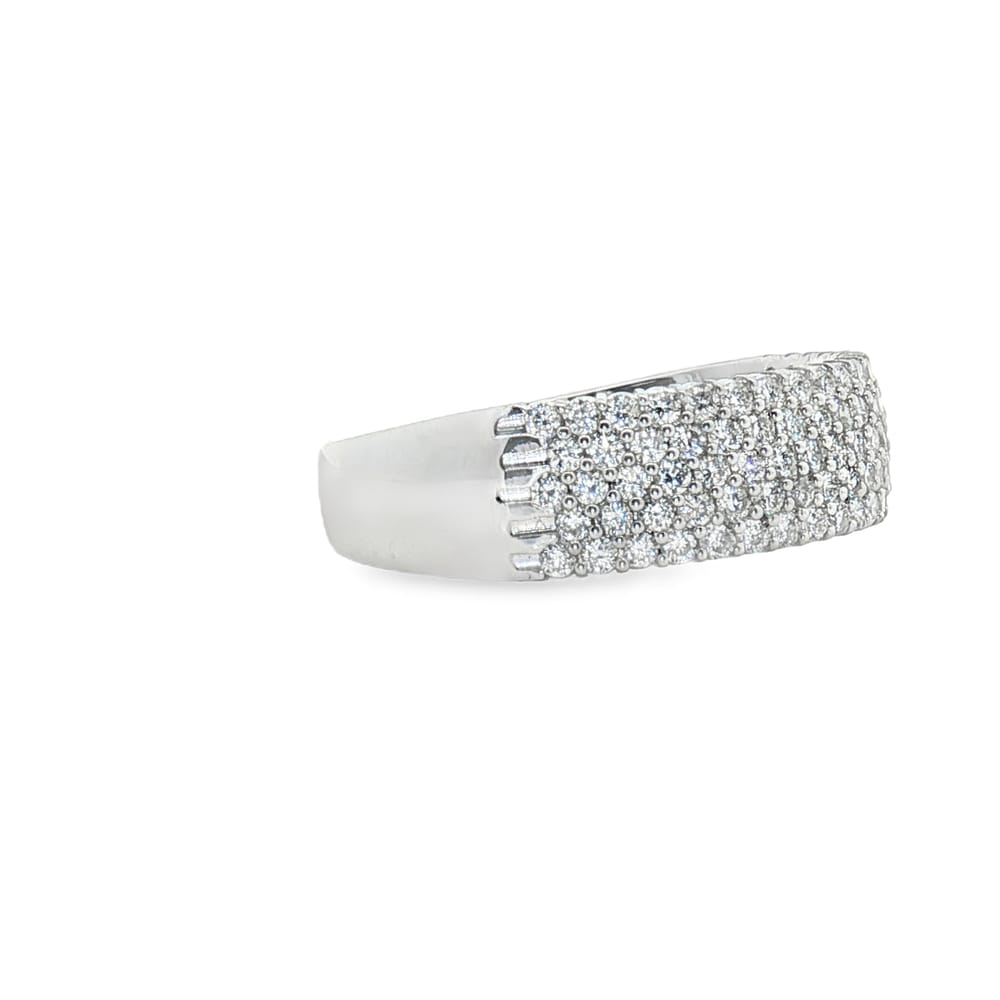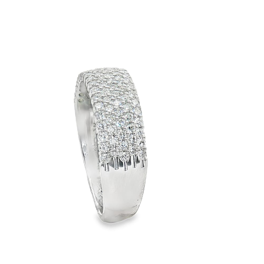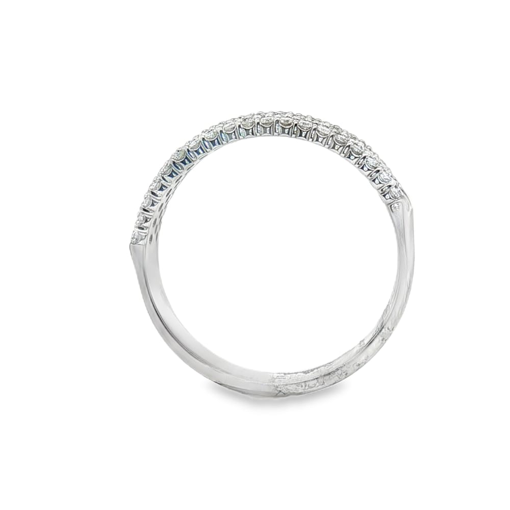 Celebrate your love with this exquisite 14K white gold wedding band, featuring a radiant array of round diamonds totaling 0.75 carats. Designed for women, this elegant piece combines timeless craftsmanship with a modern flair, perfect for expressing your eternal commitment. Its sleek and sophisticated style makes it a stunning addition to any jewelry collection, symbolizing a beautiful union.