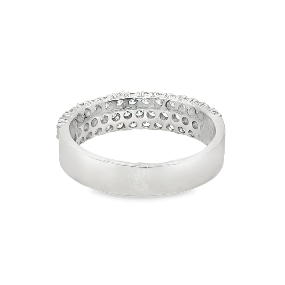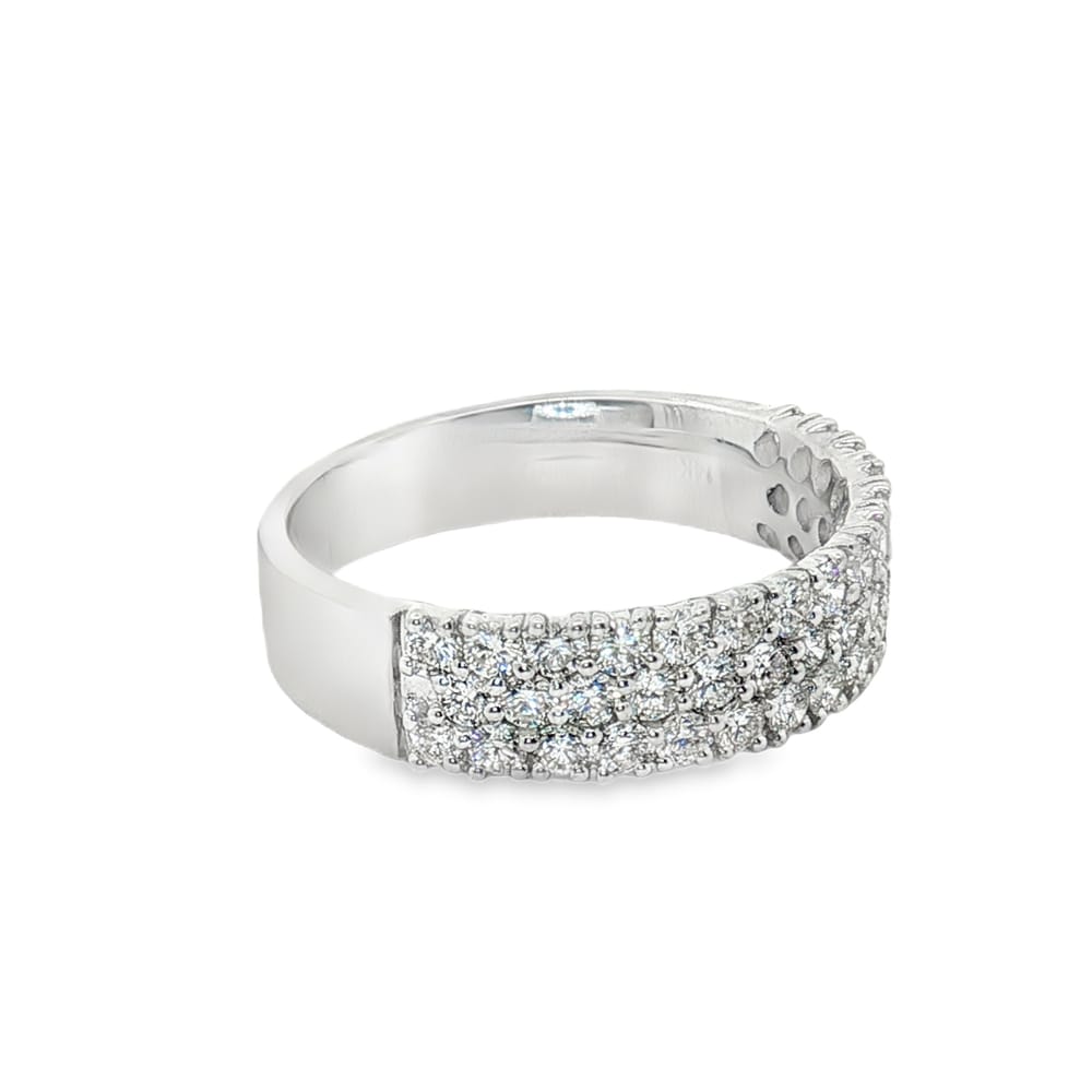 Enhance your commitment with this elegant 14K white gold wedding band, beautifully adorned with sparkling round diamonds totaling 1.01 carats. The refined design combines durability and grace, making it a perfect symbol of love and devotion. Each diamond is expertly set, ensuring a brilliant shine that will last a lifetime.
