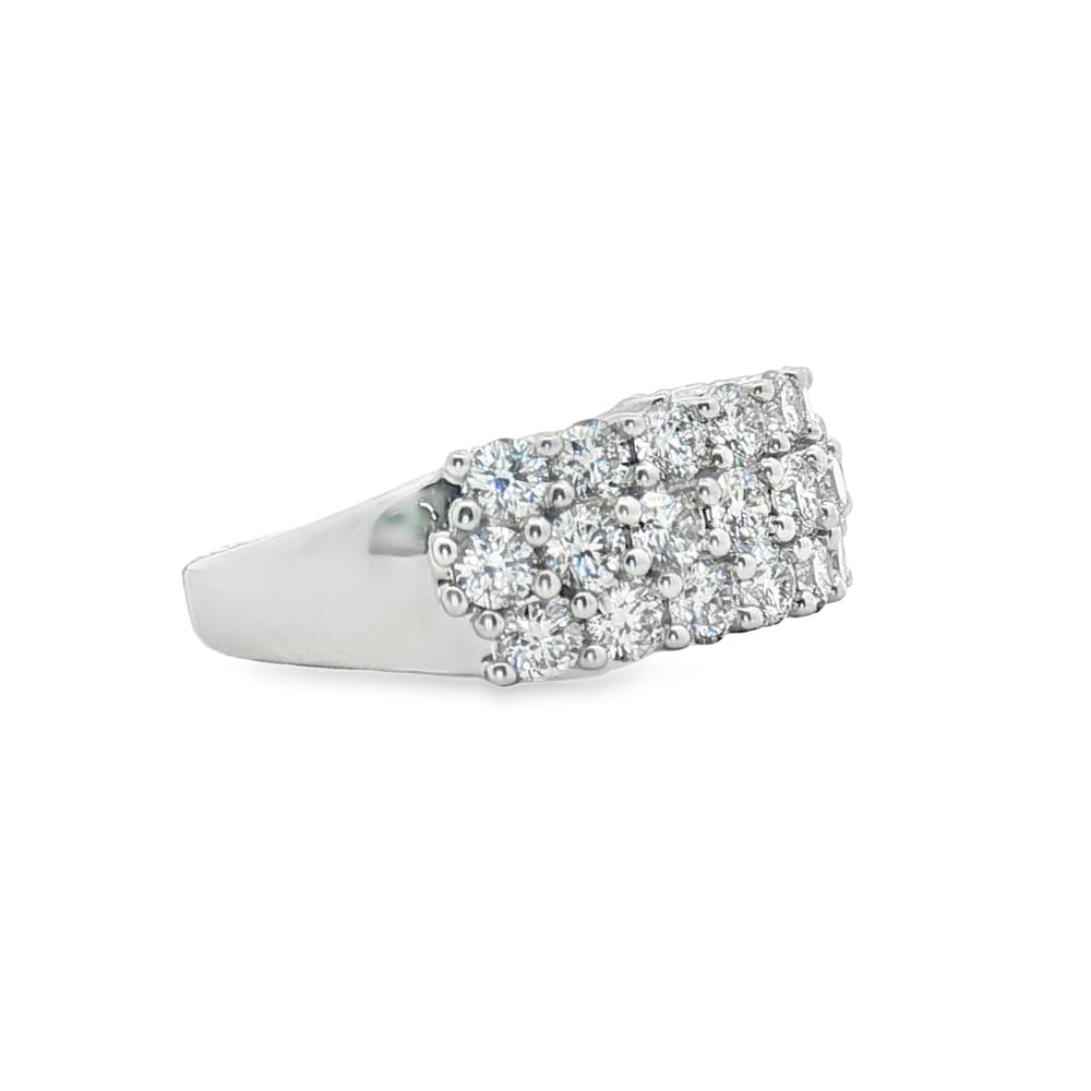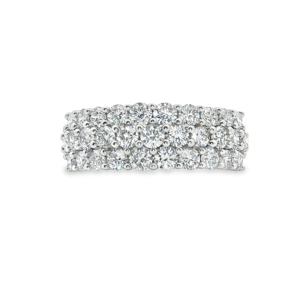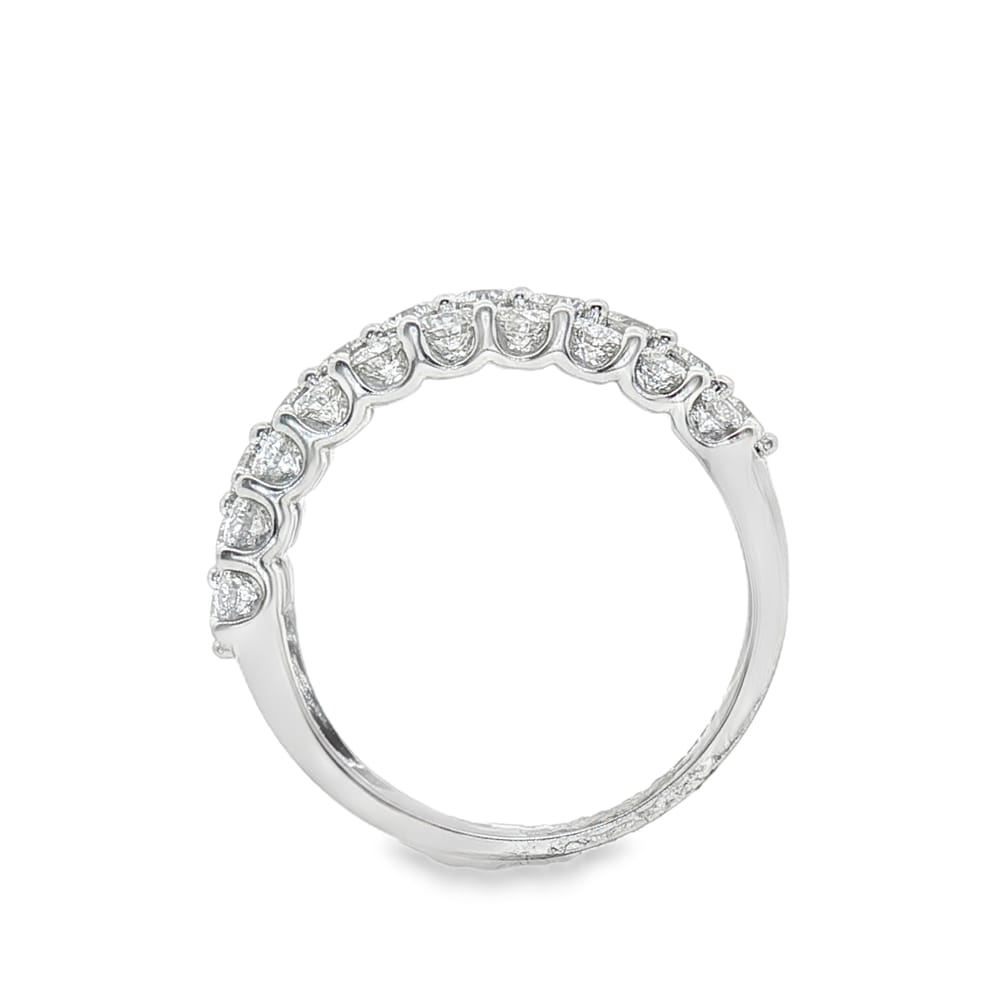 Elevate your elegance with this exquisite 14K white gold women’s wedding band. Adorned with a magnificent total of 31 round diamonds, this ring sparkles brilliantly, perfect for commemorating your commitments. Weighing 4.88 grams, it seamlessly combines style and sophistication, making it an essential piece for any special occasion.