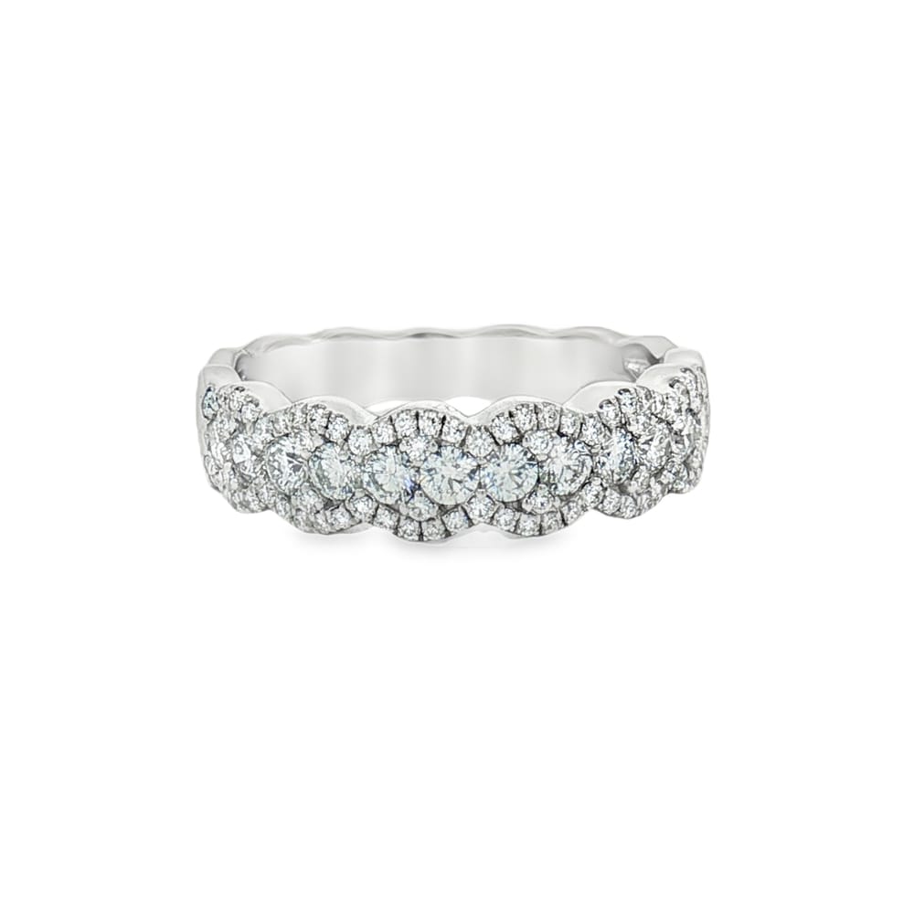This exquisite 14K white gold wedding band is designed for the modern woman, combining elegance with durability. Adorned with shimmering round diamonds, it adds a touch of sophistication to any occasion. Perfectly crafted, this ring symbolizes unbreakable bonds and timeless love, making it an ideal choice for weddings or anniversaries.
