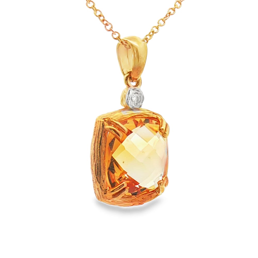 This exquisite pendant features a radiant Citrine stone and a diamond accent set in luxurious 14K yellow gold. Perfect for adding a touch of elegance to any outfit, it comes with a delicate cable chain for a comfortable wear.