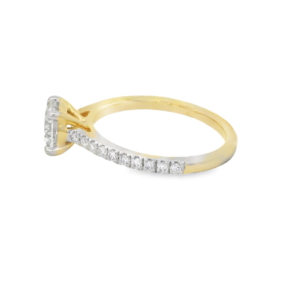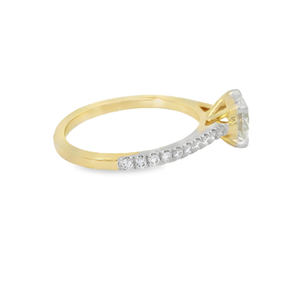 This exquisite ring set features a brilliant 1.06 ct round lab-grown diamond with F color and VS1 clarity, elegantly set in 14K yellow gold. Perfect for women who appreciate timeless sophistication, the rings embody a classic style that complements any outfit.