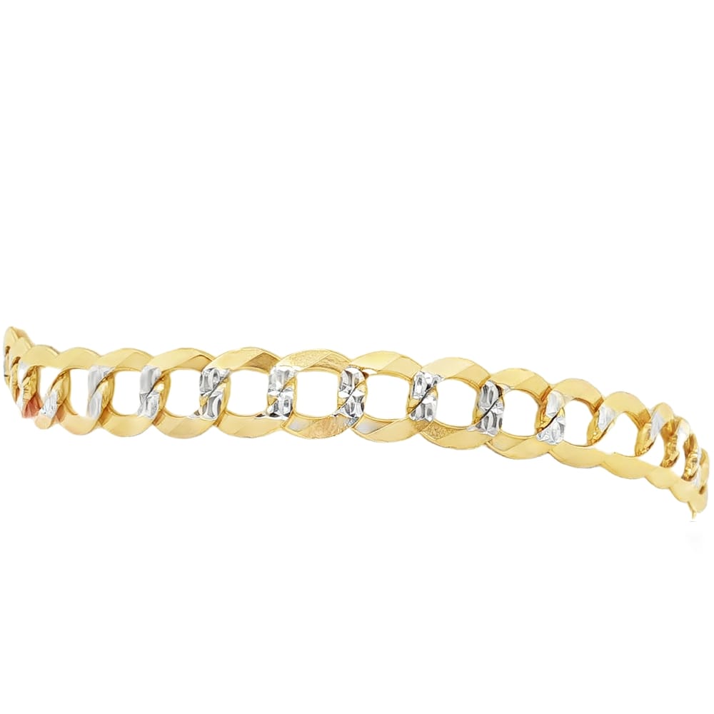 This elegant bracelet is crafted from 14K yellow gold, featuring a durable D/C curb design. Weighing 12.3 grams, it’s a perfect accessory to elevate any outfit with its timeless charm.