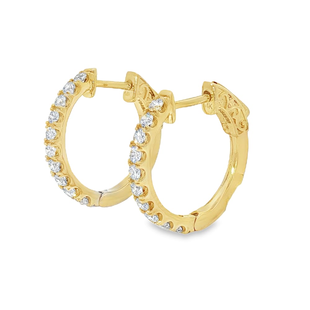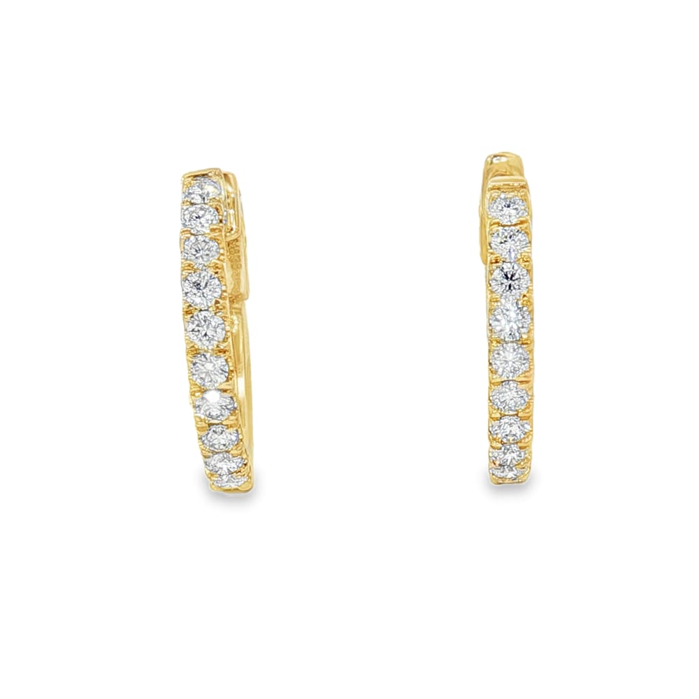 Elevate your style with these exquisite 14K Yellow Gold Diamond Hoop Earrings featuring a total weight of 3.95 carats. Adorned with 20 sparkling round diamonds, these earrings are perfect for both everyday wear and special occasions. Their elegant design complements any outfit, making them a must-have addition to your jewelry collection.