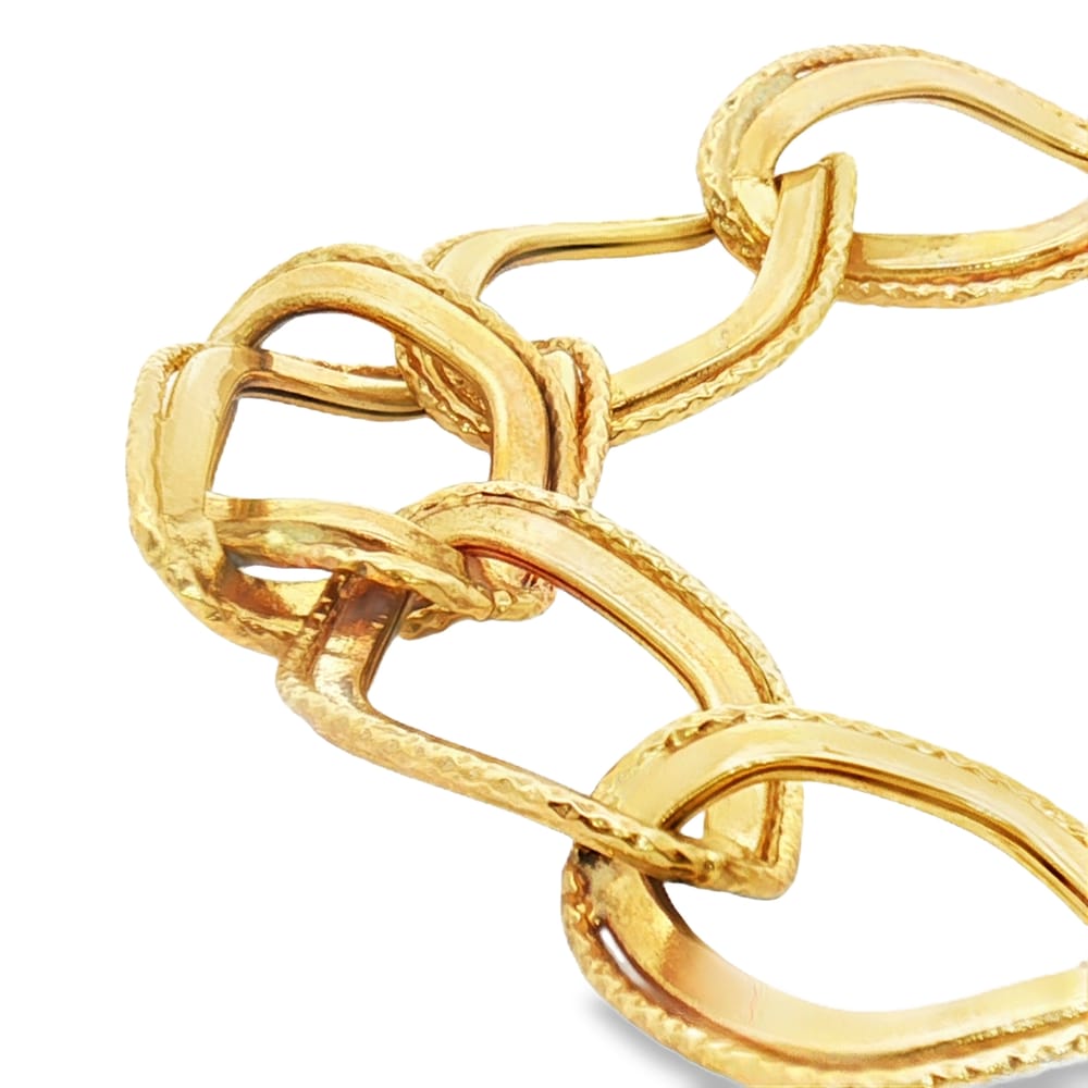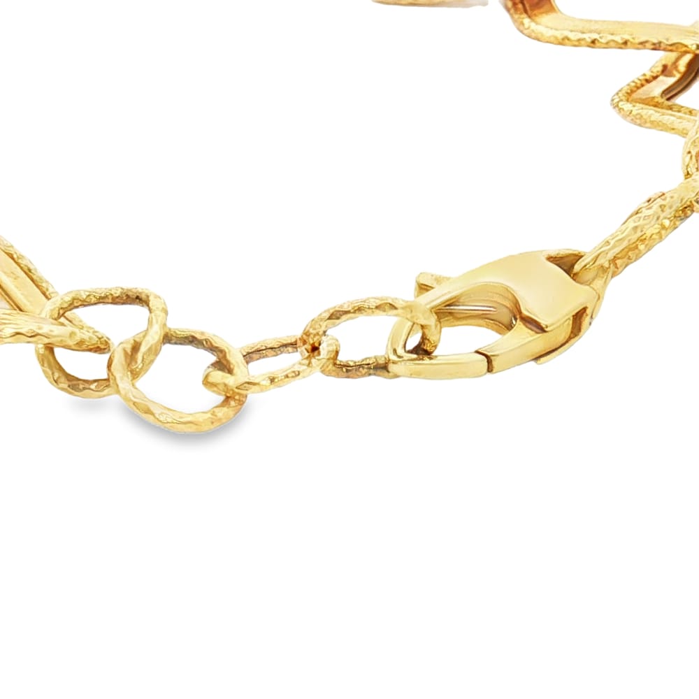 This exquisite 14K yellow gold bracelet features a distinctive diamond shape link design, enhanced by a high polish and diamond cut border that catches the light beautifully. Weighing 6.24 grams, this piece is perfect for women who appreciate elegant jewelry that adds a touch of sophistication to any outfit. With a comfortable length of 7.50 inches, it’s the ideal accessory for both everyday wear and special occasions.
