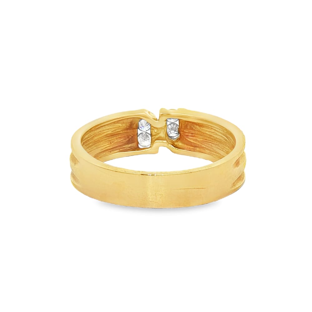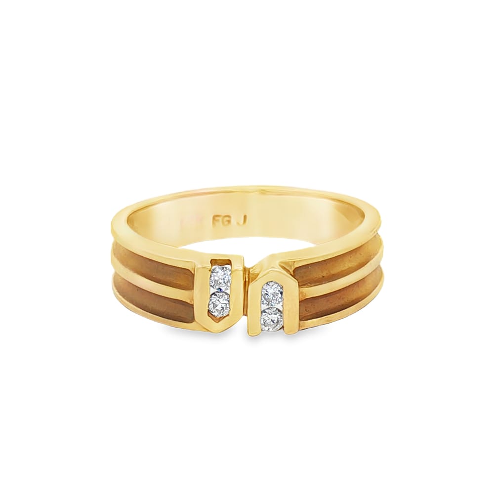 This elegant women’s wedding band features exquisite diamonds set in luxurious 14K yellow gold. Weighing 3.70 grams, the ring embodies a perfect blend of timeless beauty and modern sophistication. Adorned with four round diamonds totaling 0.10 carats, this piece is designed to celebrate everlasting love.