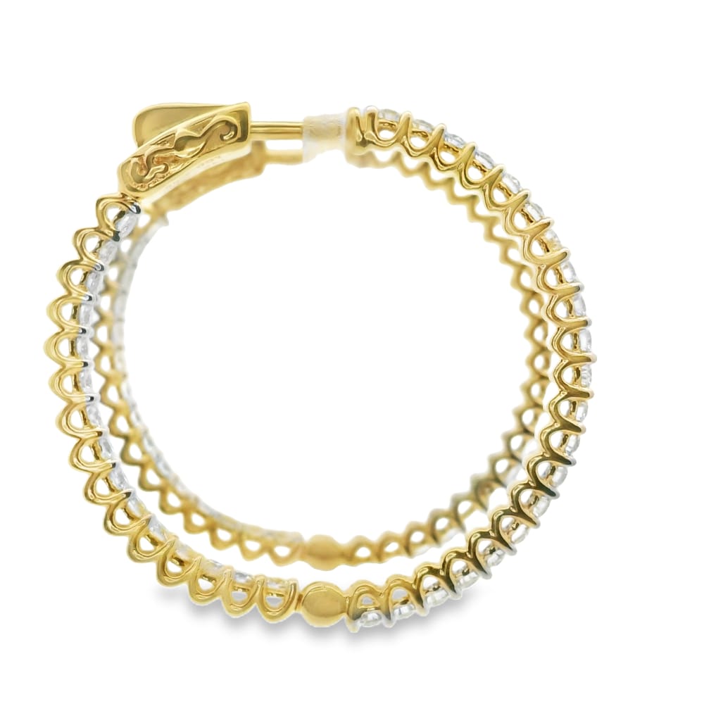 Elevate your elegance with these exquisite 14K yellow gold earrings featuring 72 round lab-grown diamonds. With a total weight of 2.00 carats and pristine E-F color and VS1 clarity, they are a perfect blend of luxury and sustainability.
