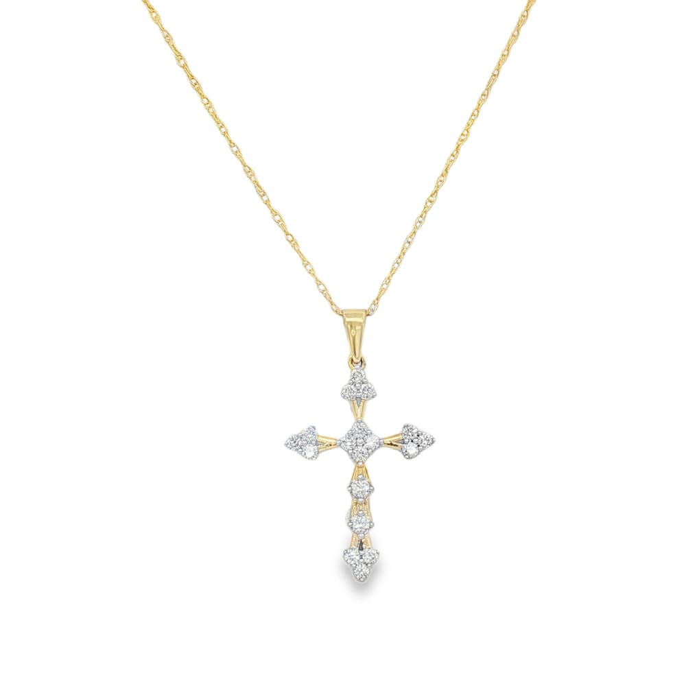 Elevate your style with this elegant 14K yellow gold linked rope chain featuring a dazzling diamond cross pendant with a total carat weight of 0.33. Crafted with precision, this necklace captures the light beautifully, making it a perfect accessory for any occasion. With a length of 18 inches, it offers a comfortable fit while showcasing your personal flair.
