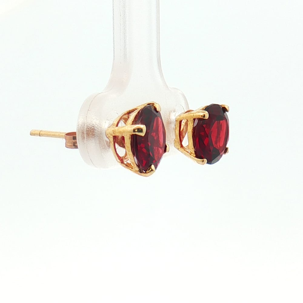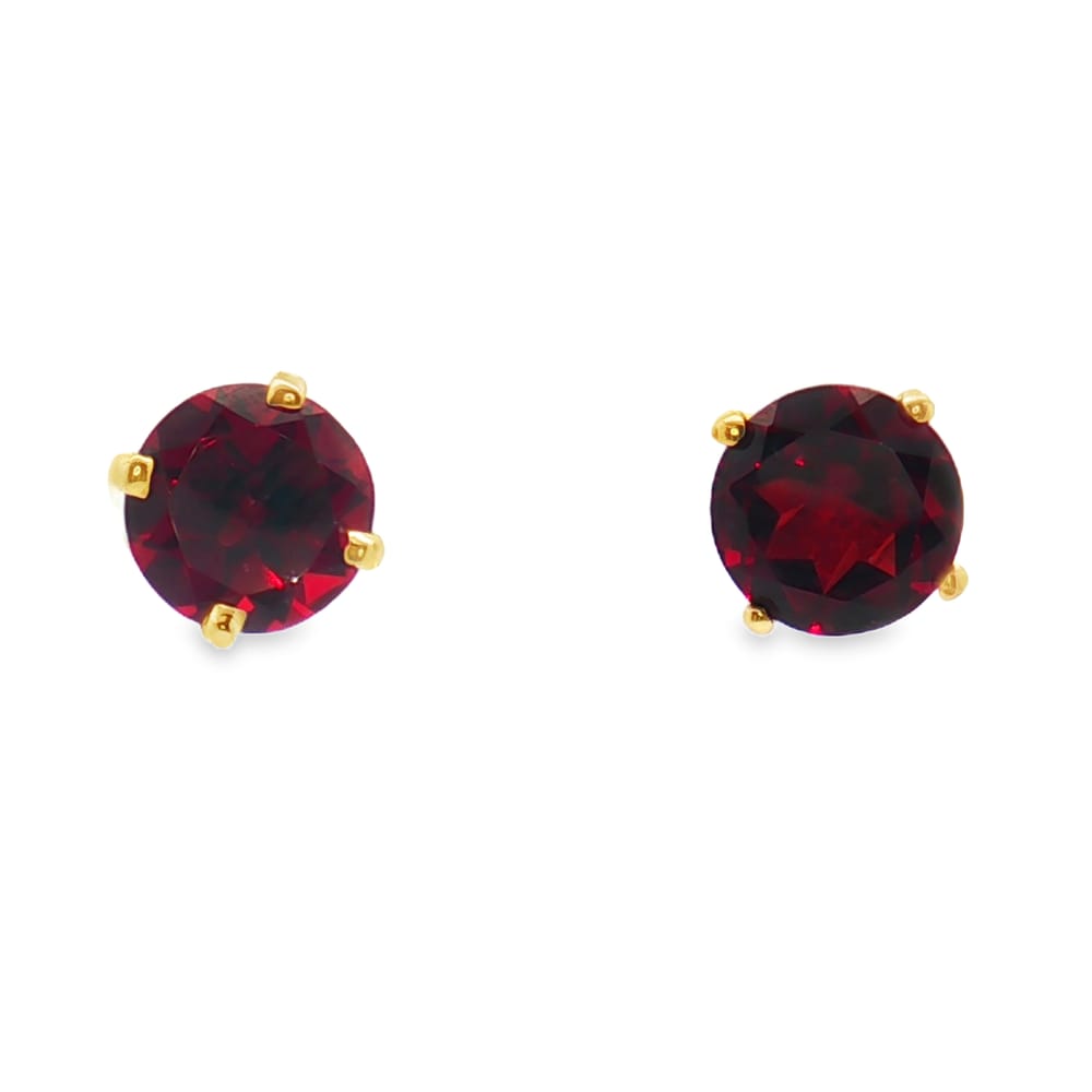 Crafted in radiant 14K yellow gold, these exquisite earrings feature alluring round garnets. Perfect for adding a touch of elegance to any outfit, these studs are a must-have for every jewelry collection.