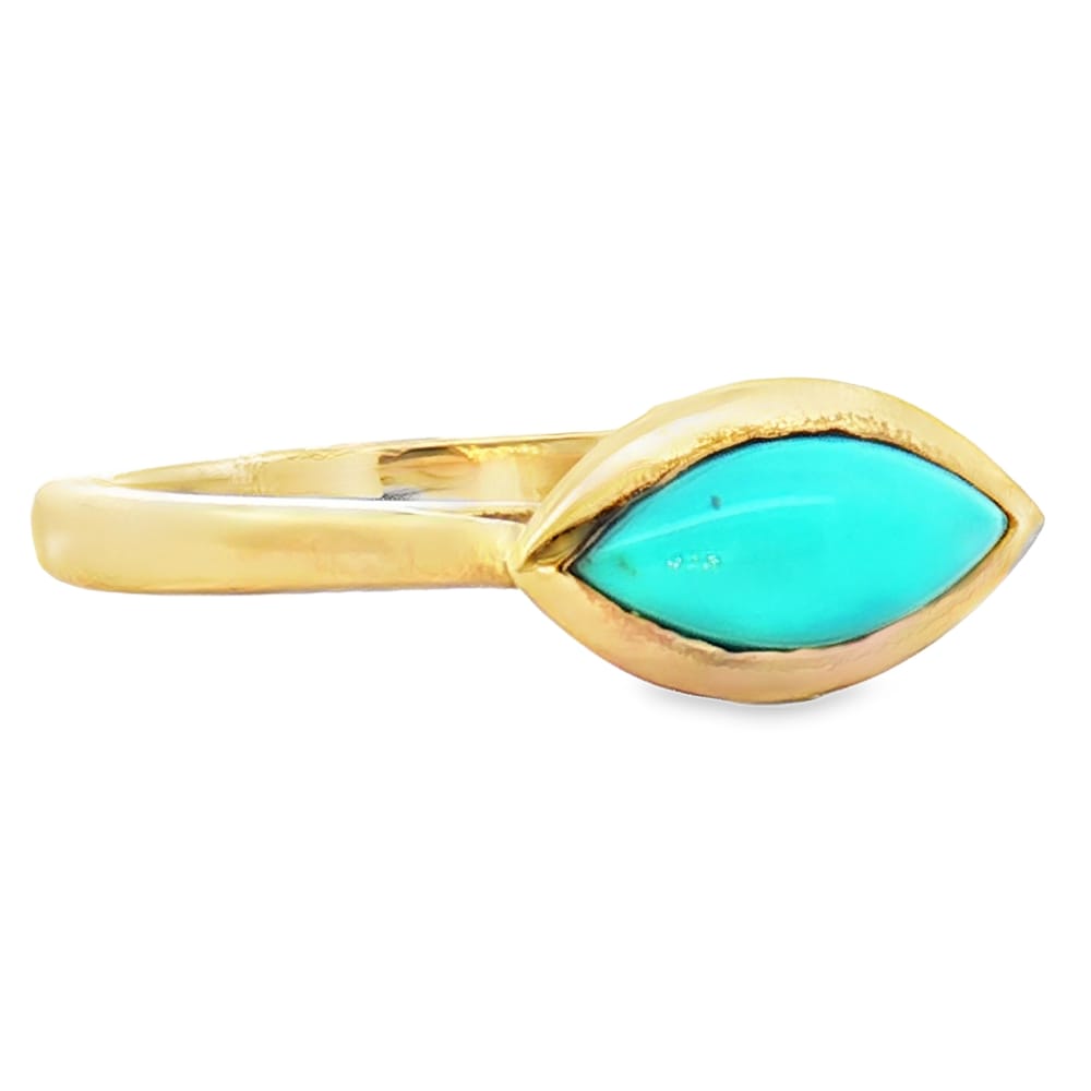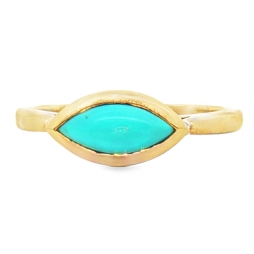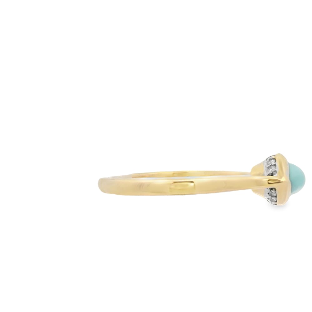 Elevate your style with this exquisite 14K yellow gold ring, featuring vibrant turquoise and breathtaking diamonds in a hidden halo. The combination of gemstones creates a striking contrast, making it a perfect statement piece for any occasion. Crafted for the modern woman, this ring adds a touch of elegance and sophistication to your jewelry collection.