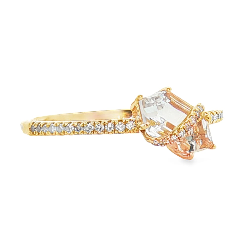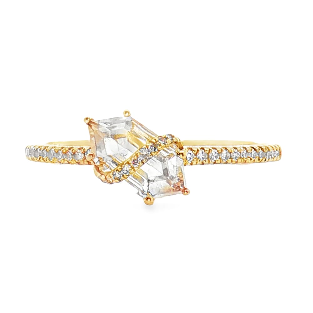 This exquisite ring features a striking white topaz centerpiece elegantly surrounded by sparkling diamonds, all set in luxurious 14K yellow gold. Perfect for any occasion, it combines sophistication with a touch of glamour, making it an ideal choice for the modern woman.