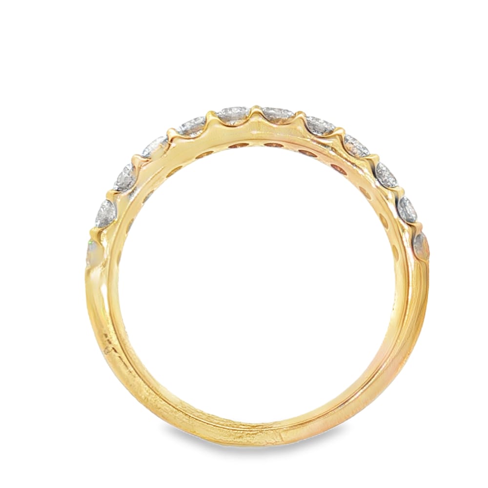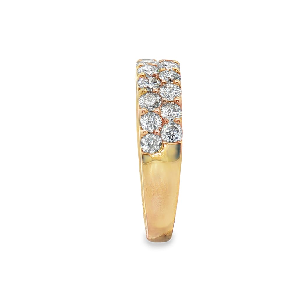 Celebrate love with this exquisite women’s wedding band, expertly crafted in luxurious 14K yellow gold. Adorned with 24 brilliant round diamonds totaling an impressive 1.50 carats, this piece radiates elegance and charm. Perfect for the special occasion, this band beautifully symbolizes your timeless commitment.
