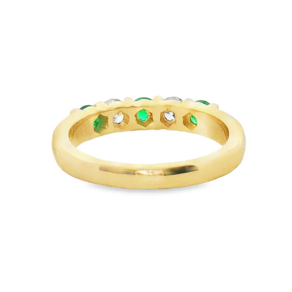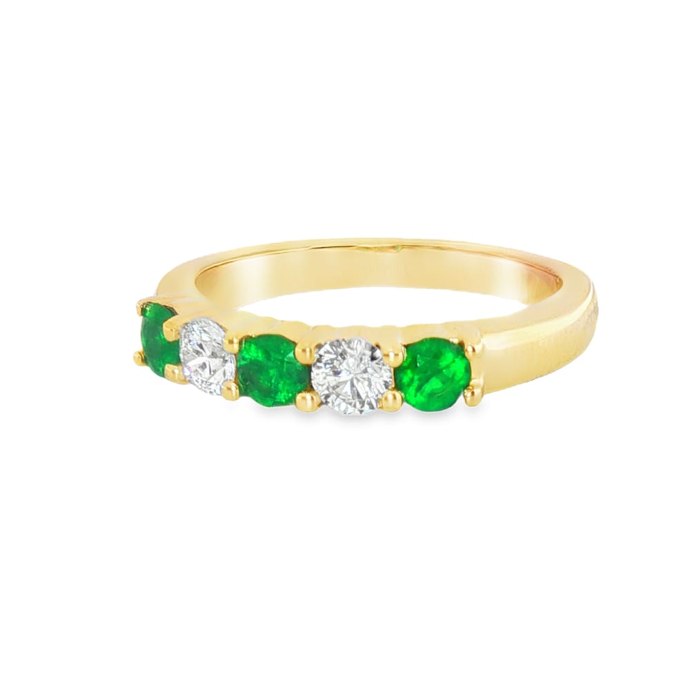 This exquisite 14K Yellow Gold ring features a remarkable combination of diamonds and emeralds, perfectly set to create an eye-catching design. With a total weight of 0.68 carats, the four round stones provide a striking contrast, showcasing both elegance and sophistication. Sized at 6.50, this ring is an ideal choice for women who appreciate fine jewelry with a unique touch.