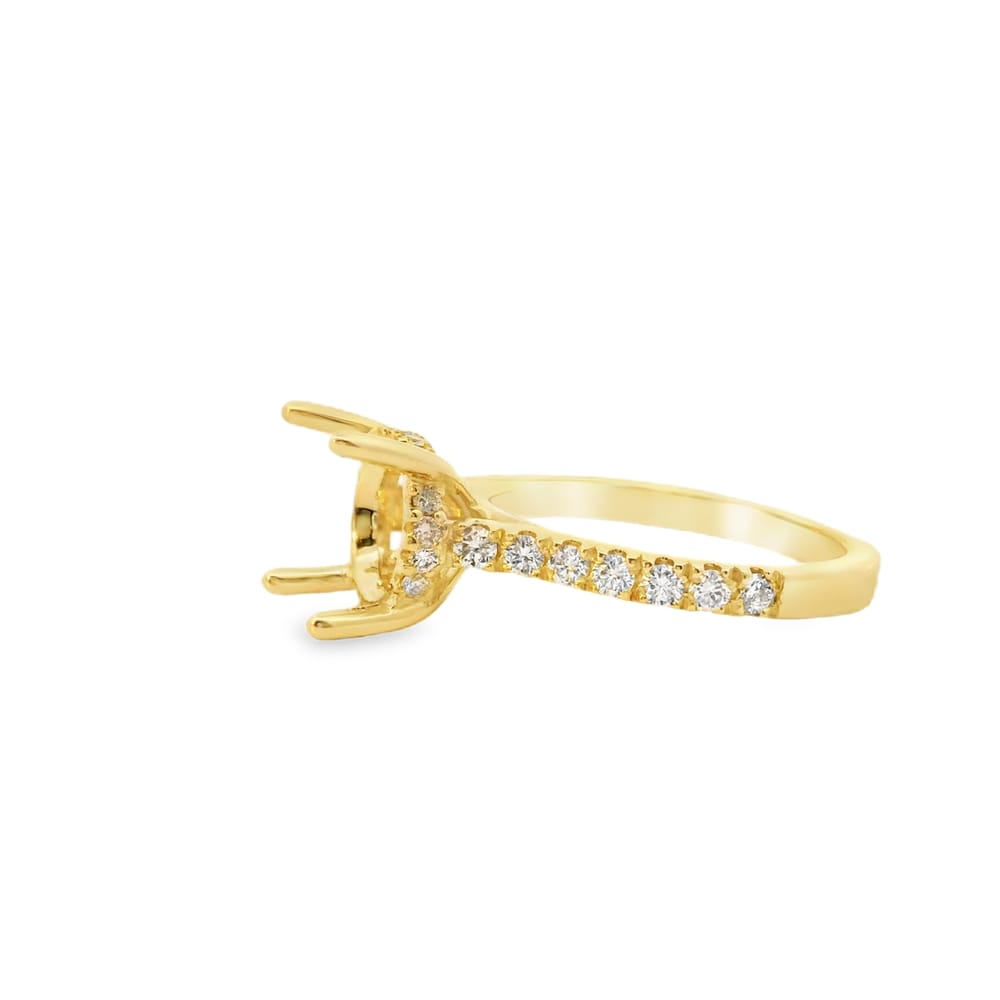 This exquisite 14kt yellow gold semi-mount engagement ring is designed specifically for women, featuring a total of 30 round diamonds weighing 0.53 carats. With a 10mm center stone setting, it offers a perfect canvas for your chosen gemstone, making it an elegant choice for a memorable proposal.