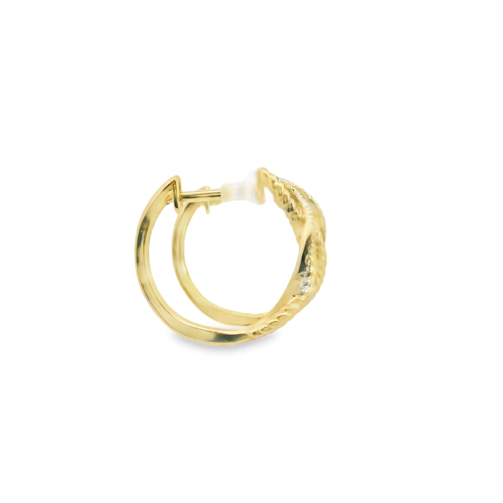 Elevate your elegance with our exquisite 14K Yellow Gold Diamond Hoops, a timeless addition to any jewelry collection. These stunning hoops are crafted from lustrous 14K yellow gold, offering a radiant and sophisticated shine. Each earring is adorned with 36 round diamonds, totaling 0.09 carats, meticulously set to enhance their natural sparkle and brilliance.