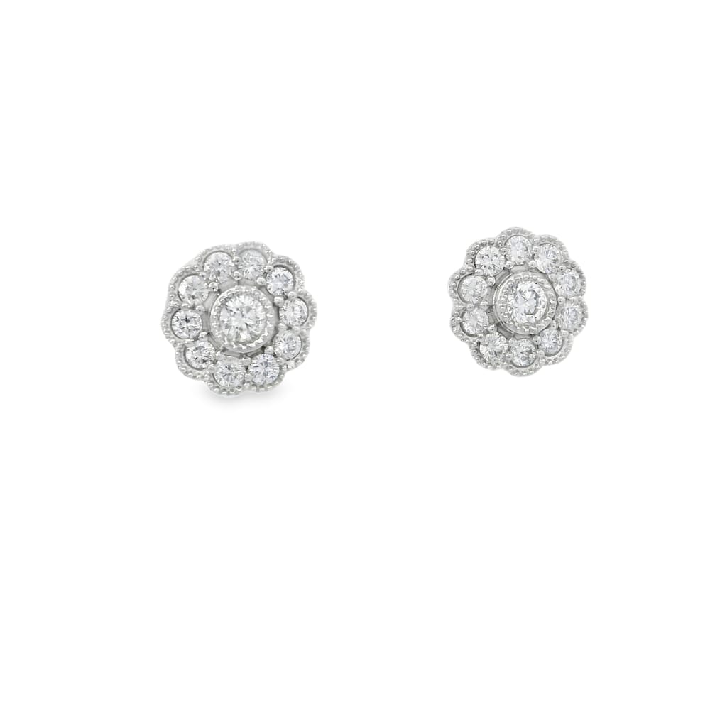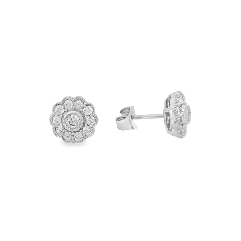 Elevate your elegance with these exquisite 14K gold earrings featuring a dazzling round cluster of diamonds.