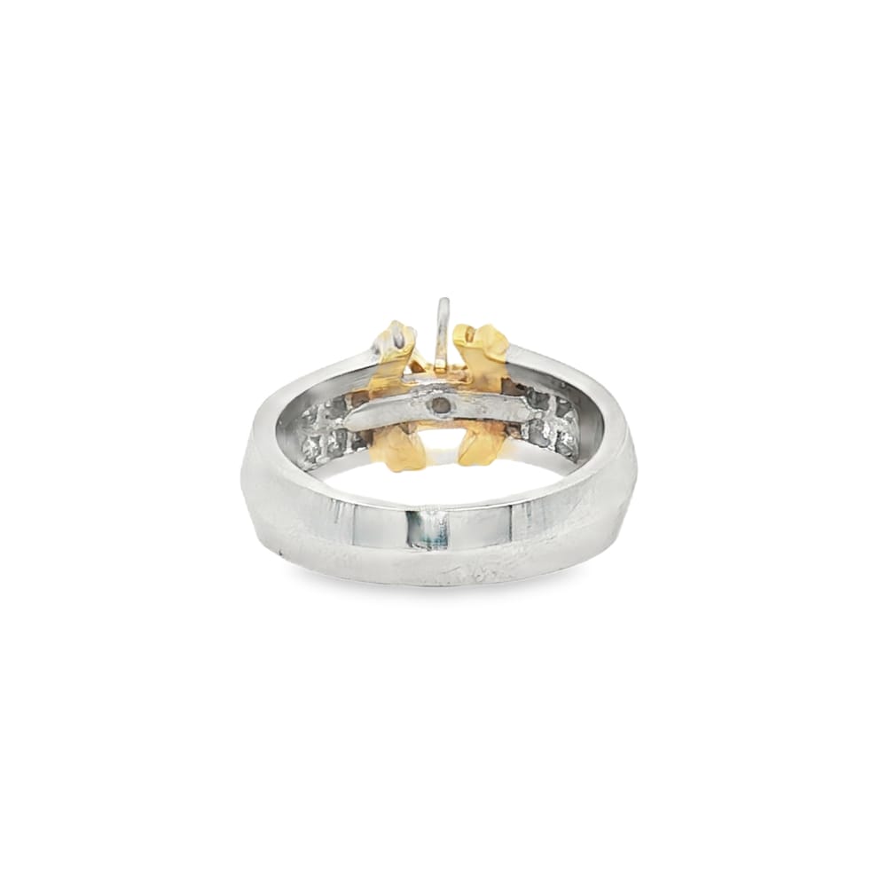 This exquisite semi-mount engagement ring features a striking combination of 18K gold and platinum, designed to showcase a single stunning center stone. Adorned with 12 radiant princess-cut diamonds, this piece not only sparkles vividly but also offers a luxurious feel, weighing 10.31 grams. Perfectly crafted for women who appreciate elegance, this ring serves as the ideal base for your dream stone.