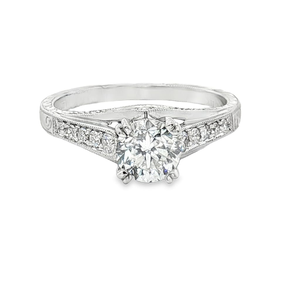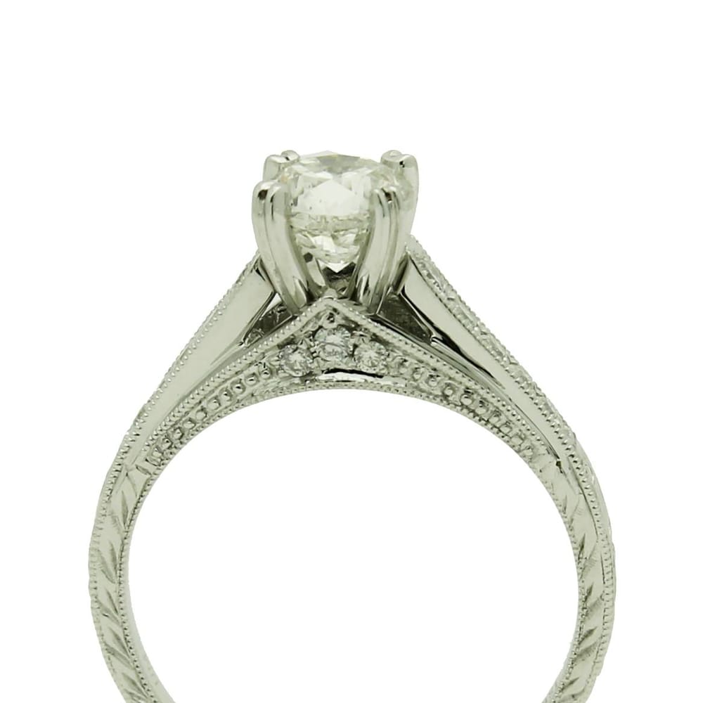 18K Gold Round Semi-Mount Engagement Ring for Women with Diamonds and White Finish